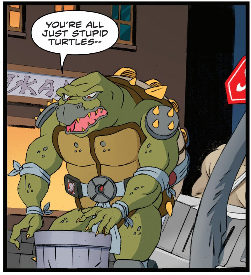 Quelques minutes plus tard, les tortues reprenaient leurs esprits. Certains comme Raphael étaient contre l’idée d’aider Himiko, mais Splinter insistait pour tendre un piège à leurs ennemis. Leonardo allait forcément dans le sens de son maître, prétextant que la jeune femme ne leur avait pas fait de mal. Donatello avait une idée très simple : offrir à Krang son portail. Il travaillait sur une nouvelle version, l’ancien pouvait être perdu sans problème. Donner une fausse version mettrait les étudiants de leur alliée en danger.