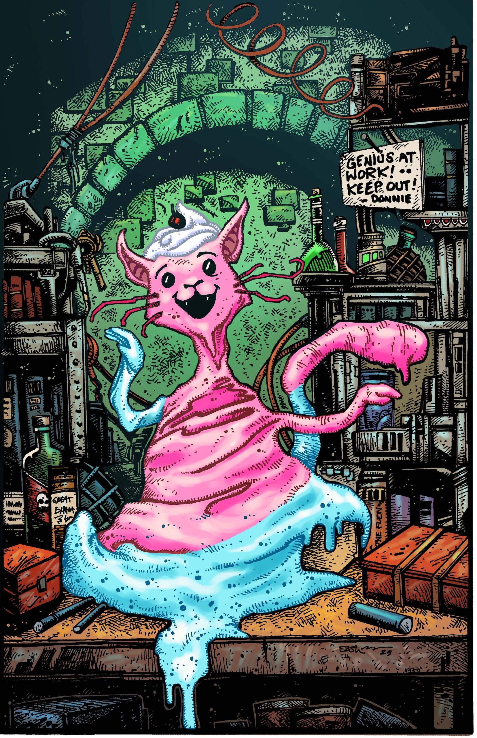 Les couvertures de ce numéro entretiennent le mystère quant à l’apparence de Michelangelo, une fois transformé par Mutagen Man. Les concept arts avaient été dévoilés un mois avant les sollicitations par le compte officiel des Tortues Ninja, permettant de voir que la tortue se transforme en une créature insectoïde avec des traits de ce qu’il sera à partir de la saison 9 avec sa surmutation.