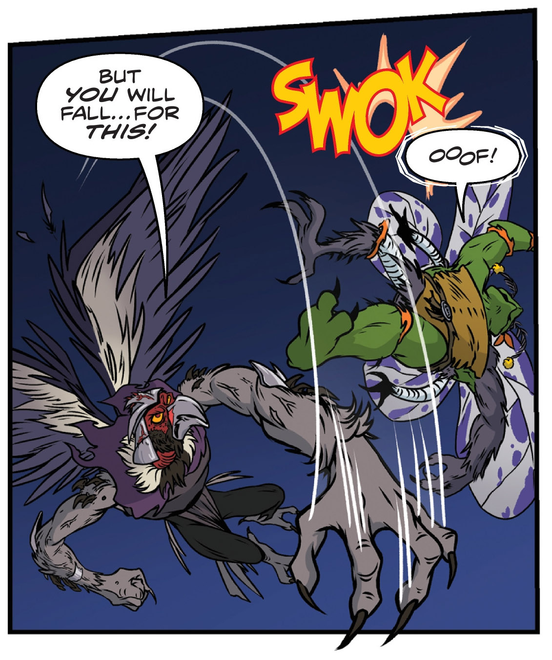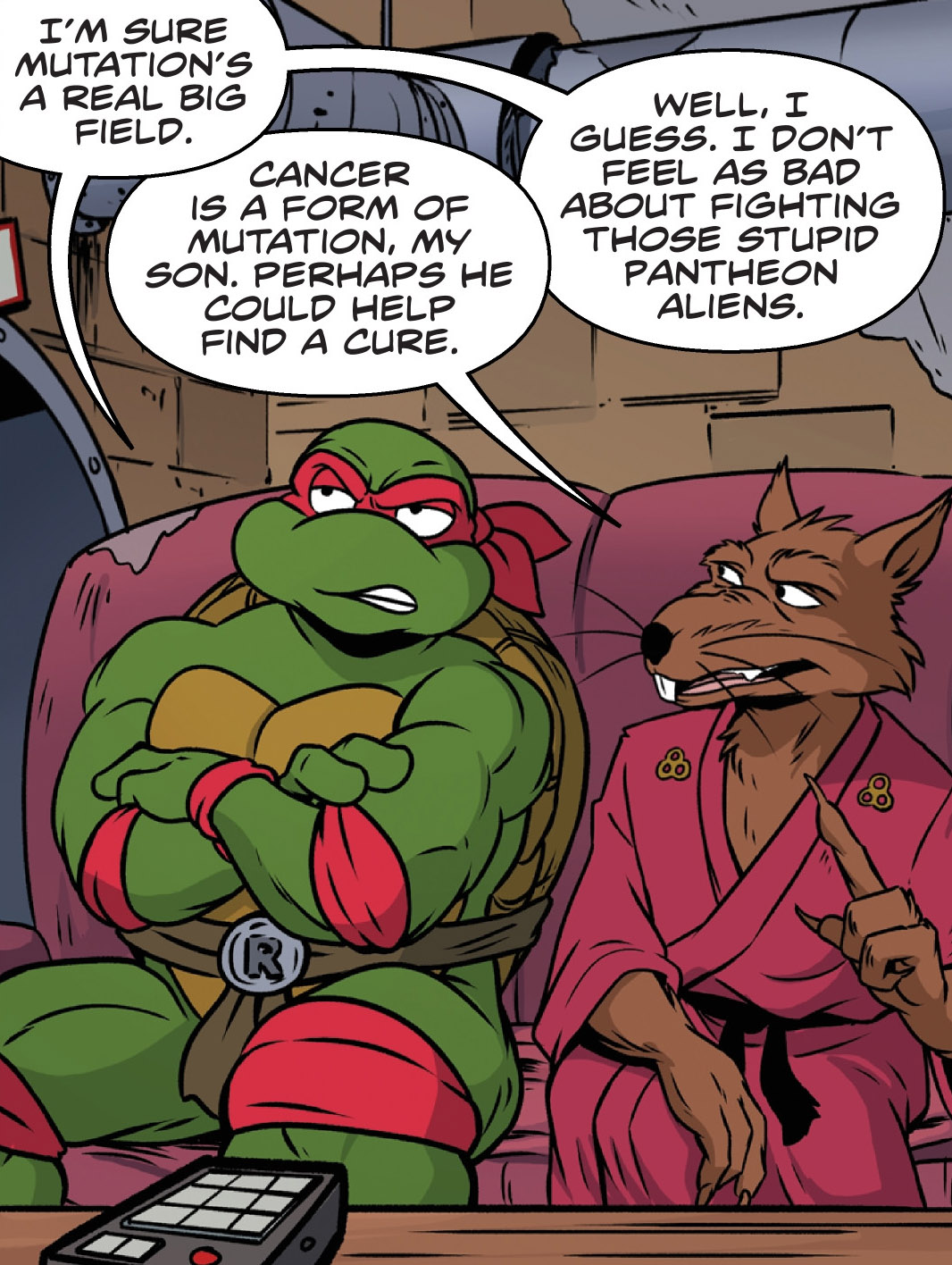 - L’un des mutants qui passe dans la rue est un faucon avec le symbole du Foot Clan. Il s’agit d’un clin d’œil à Koya, créée par Sophie Campbell dans le volume 5 d’IDW Publishing.