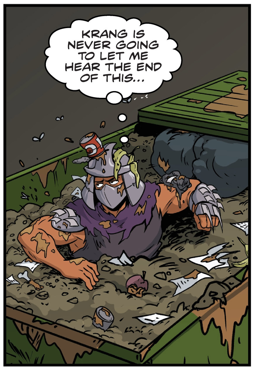 Tandis que les tortues s’affairaient à rattraper Shredder, ce dernier savourait sa victoire prochaine. Mutagen Man ne semblait pas apprécier d’avoir été enlevé. L’homme au masque de fer le menaçait de le jeter par-dessus bord s’il continuait à ne pas vouloir coopérer. C’est alors que Michelangelo arriva et percuta volontairement la passerelle pour effrayer Shredder.