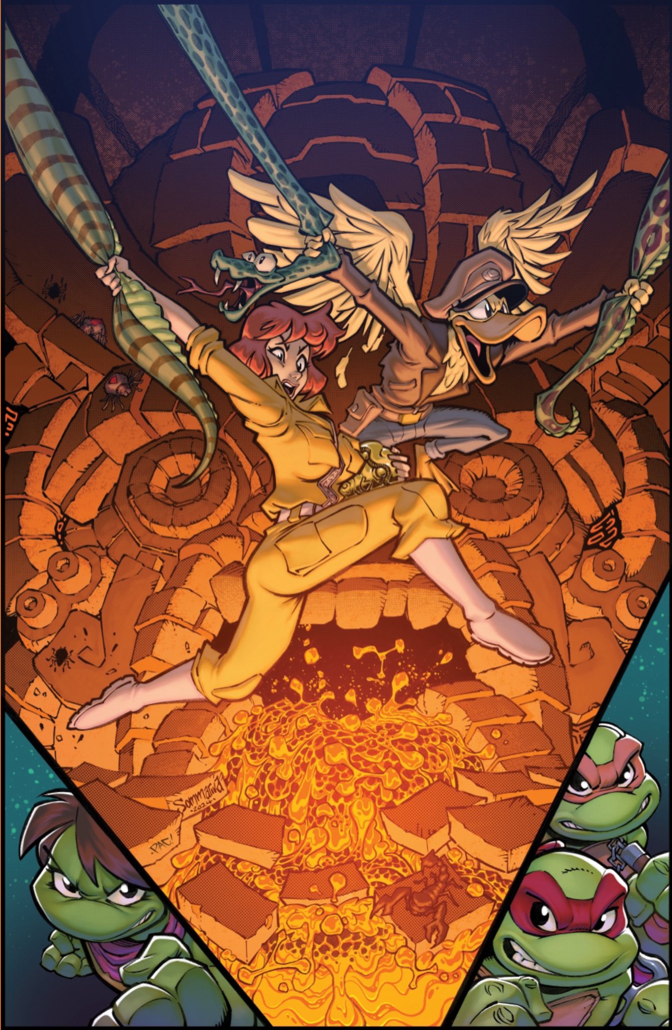 What better month to have a special dedicated to the Teenage Mutant Ninja Turtles’ favorite journalist in a jumpsuit? Shredder’s been stranded after his plan to acquire a new Technodrome backfired on him, but April still finds herself in a serious situation with the heroes in a half-shell nowhere in sight! Luckily, April doesn’t have to adventure alone, as Ace Duck makes his debut, seeking hidden treasure in the Lost Temple of Avila! This adventure will be newsworthy and that’s no April fooling! Also, because you demanded it, this 40-page issue features the return of another very special mutant: Mona Lisa!