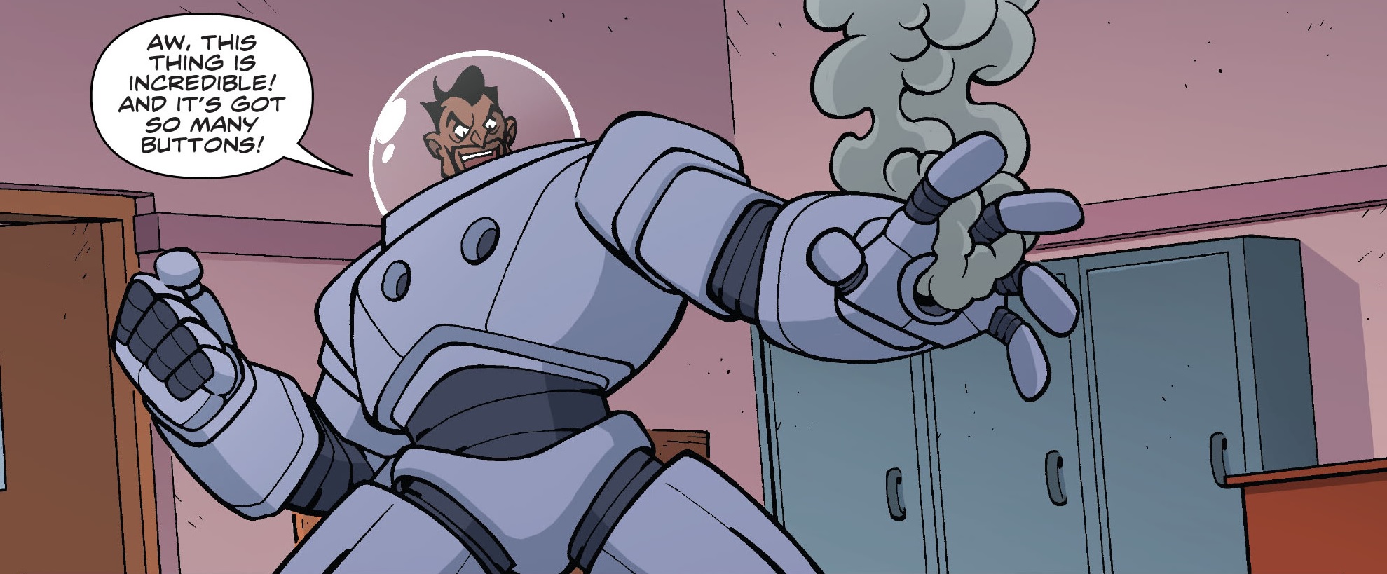 L’ouverture du portail transportable de Donatello permet d’inclure quelques clins d’œil- Nous voyons que Thrum (TMNT SMA #2) continue de faire carrière dans une autre dimension