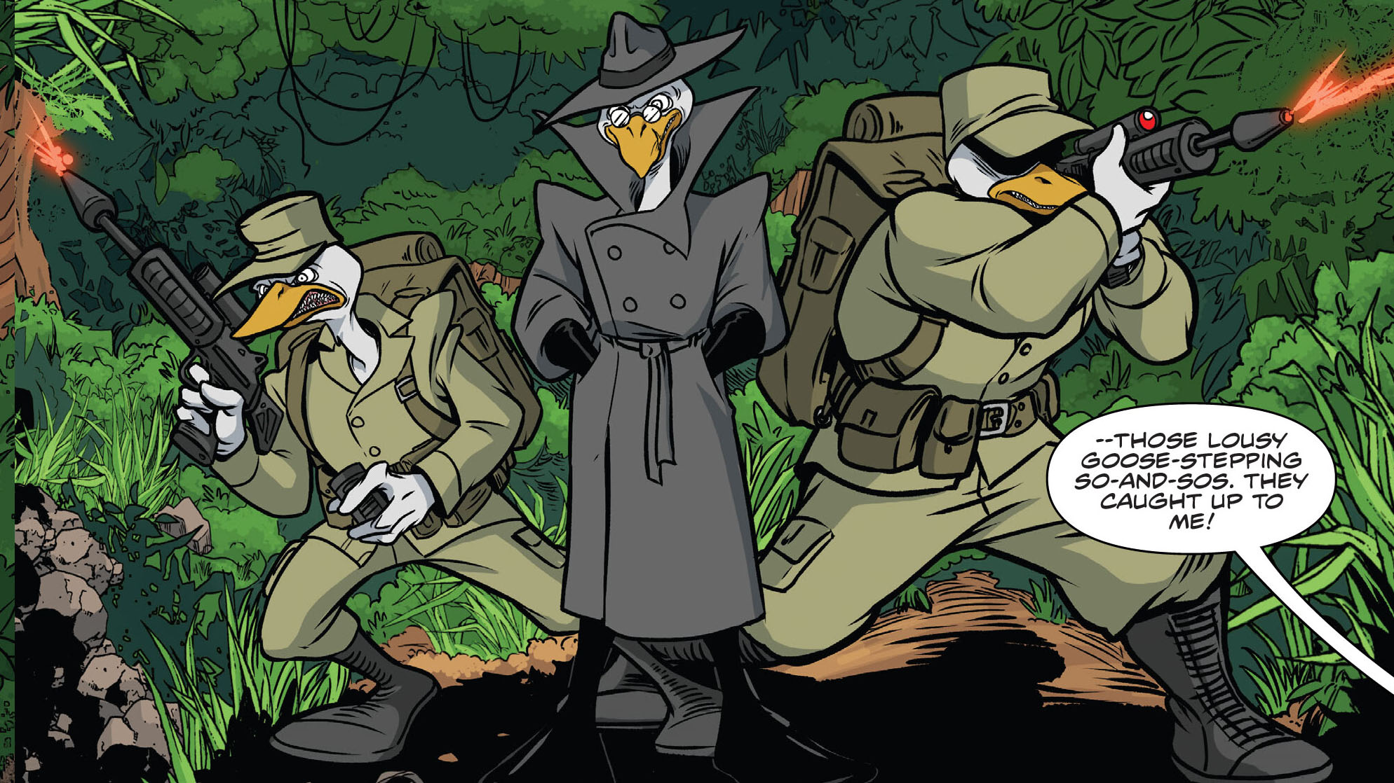 Au même moment, une voix raisonnait dans la galerie sombre. Leurs ennemis les avaient retrouvés et les tenaient en joue. L’heure était venue pour Ace Duck de conduire ses ravisseurs jusqu’au Cœur. April et lui étaient poussés à travers le couloir pour ouvrir la marche. La journaliste se demandait pourquoi l’aventurier tenait tant à mettre la main sur cet artefact. Volonté d’argent ? Non, quelque chose de bien plus cher aux yeux du canard. Comme l’objet devait répondre à ses questions, il pourrait enfin découvrir où se cachait son père, disparu lorsqu’il n’était encore qu’un enfant.