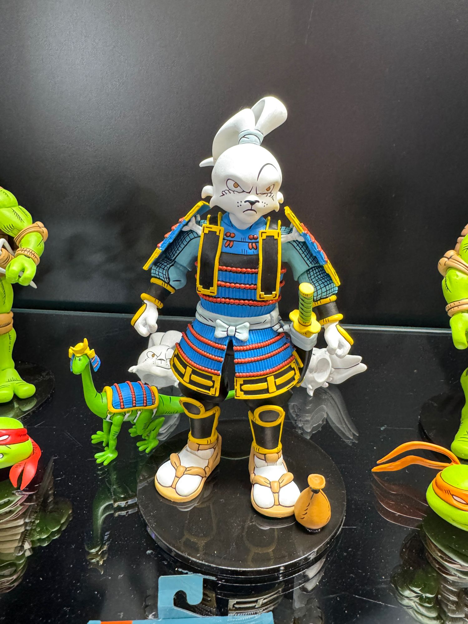 Lors du Toy Fair de New York, en mars 2025, NECA avait présenté quatre nouvelles tortues et un Miyamoto Usagi inspirés des dessins de Stan Sakai. Ces figurines étaient alors annoncées pour la fin de l’année. Le lapin ronin arbore une toute nouvelle sculpture, en armure, inspiré de son apparition dans le crossover TMNT x Usagi Yojimbo – Wherewhen.