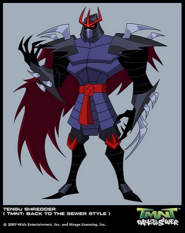 Le Tengu Shredder est, dans l’univers de la série de 2003, le véritable Shredder. Il s’agit d’un démon gigantesque qui terrorisait le Japon au IVe siècle de notre ère. Il voulait rendre le monde chaotique. Afin d’en venir à bout, l’empereur alors en place fit appel à cinq grands guerriers, Oroku Saki, Kon, Juto, Chikara et Hisomi. Revêtus d’armures magiques, ils partirent au combat contre le démon. Seul Saki fut capable de le jeter à terre et lui trancha le bras gauche. Montant sur sa poitrine pour lui porter un coup fatal, il fut interrompu par le Tengu qui lui proposa un marché : une puissance sans limite contre son âme. Oroku Saki accepta et permit au démon d’entrer en son corps, avant de détruire celui de la créature gisant au sol.