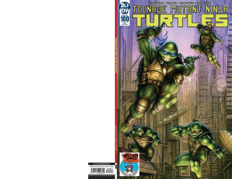 - À l’occasion de ce centième numéro, ce sont pas moins que trois RI covers qui ont été réalisées, par Mateus Santolouco, Freddie Williams et une par Peter Laird et Kevin Eastman !