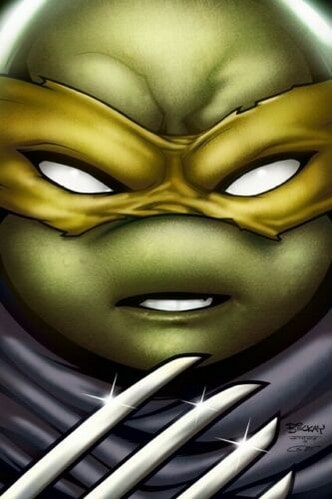 Pour les collectionneurs les plus hardcore, une série de couvertures assez folles à été lancée, en hommage au Turtlemania Special #1, sorti en 1986 et étant la veille de la sortie du TMNT #100 le comic le plus rare de la licence des Tortues Ninja. Tiré à très faible exemplaire, il existe une version blanche, montrant une tortue sur la place, en noir et blanc, et dont seulement la peau est verte. Une version extrêmement rare a été faite avec une couverture dorée et des dessins d’Eastman à l’arrière, et limitée à seulement 10 exemplaires. Un véritable Graal donc dans la collection d’un fan. Le fournisseur Sad Lemon Comic a décidé de rendre hommage, avec Mike Vasquez, à cette couverture, en y incorporant cette fois Jennika. Le dessin a totalement été refait et les ajouts pour signifier la nouvelle arrivante. Une version en noir et blanc, avec la peau verte, est la version la plus courante, avec 400 exemplaires (entre 15,50£ et 38,95£ pour une précommande). 100 de plus ont été tirés et ont été signés et numérotés par Eastman, et où il a apposé également une mark (un head sketch plus poussé) (58,95£). Enfin, le Graal de 1986 a été égalé, avec un tirage limité à 10 exemplaires seulement, avec une couverture dorée, et à l’arrière, disposant de dessins d’Eastman (389,95£).