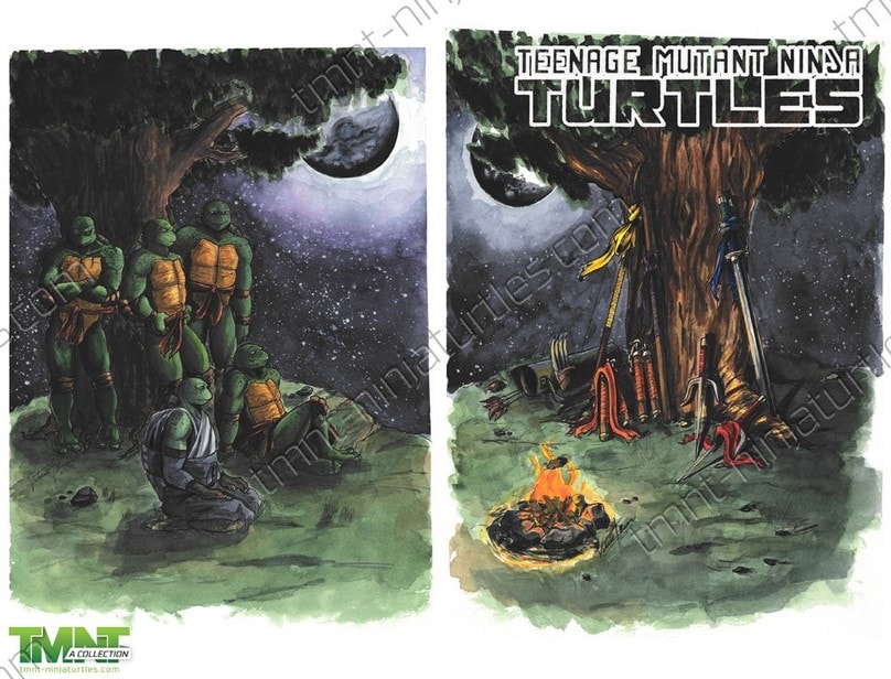 La famille Hamato quant à elle, pleurait la très lourde perte. Si Splinter s’était sacrifié pour la Terre, les tortues avaient perdues un père.