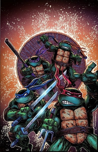 - Pour ce numéro très spécial, certains anciens artistes sont de retour pour des couvertures exclusives, comme Dave Garcia, dessinateur de quelques numéros chez Archie Comics pour TMNT Adventures (TMNT A. #1, TMNT A. #2, Origin of the species).