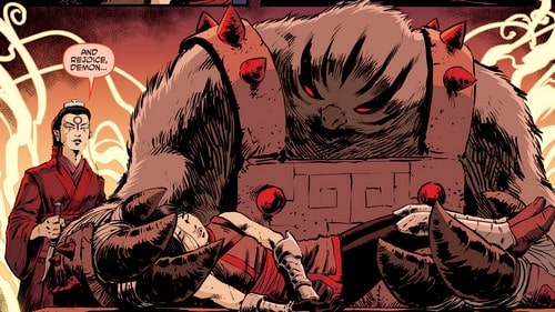 Dans la cohue sur les toits de New York, Karai venait réclamer son épée. À sa grande surprise, Ocho vint s’interposer, l’empêchant de reprendre son artefact à la sorcière. Le yokai était à présent sous les ordres de Kitsune, jusqu’à ce que celle-ci puisse ramener le Dragon à la vie.