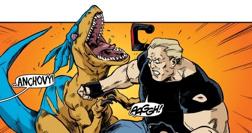 - Tout comme au cours de la mini-série Bebop & Rocksteady hit the road, le raptor Anchovy apparaît pour sauver Bebop et Rocksteady, en se jetant sur Hun.