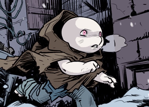 La nouvelle mutante confiait à la renarde sa difficulté à accepter sa situation. Voyant qu’elle ne trouvait nulle part où aller, Alopex lui proposait de l’aider au refuge. Au même moment, les deux femmes virent un visage à travers la porte, laissée entre-ouverte. Celui d’une tortue encore enfant, apeurée. Elle était l’un des innombrables bambins qui avaient été abandonnés par leurs parents à la suite de l’attentat a mutagène (TMNT #98). Elle essayait de les accueillir dans ce lieu, mais ce n’était pas toujours aisé. Et ça l’était encore moins depuis que les Mutanimals faisaient régner leurs lois dans les quartiers et rationnaient (mal) la nourriture. Jennika se levait et se dirigeait vers la rue, essayant de retrouver la petite tortue. Elle savait y faire avec les enfants.