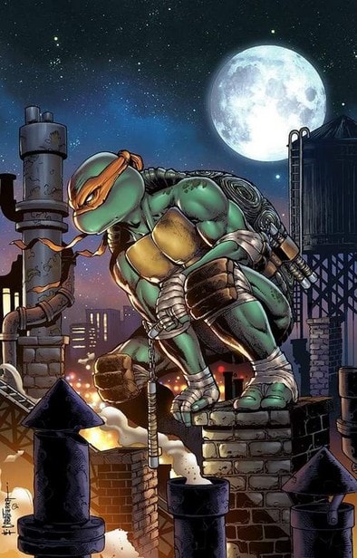 Pour le second fournisseur, il est question de rester toujours sur le même artiste, à savoir le très talentueux Emil Cabaltierra, qui en cinq couvertures (TMNT #101–TMNT #105), réalisa une fresque mettant en scène les tortues.