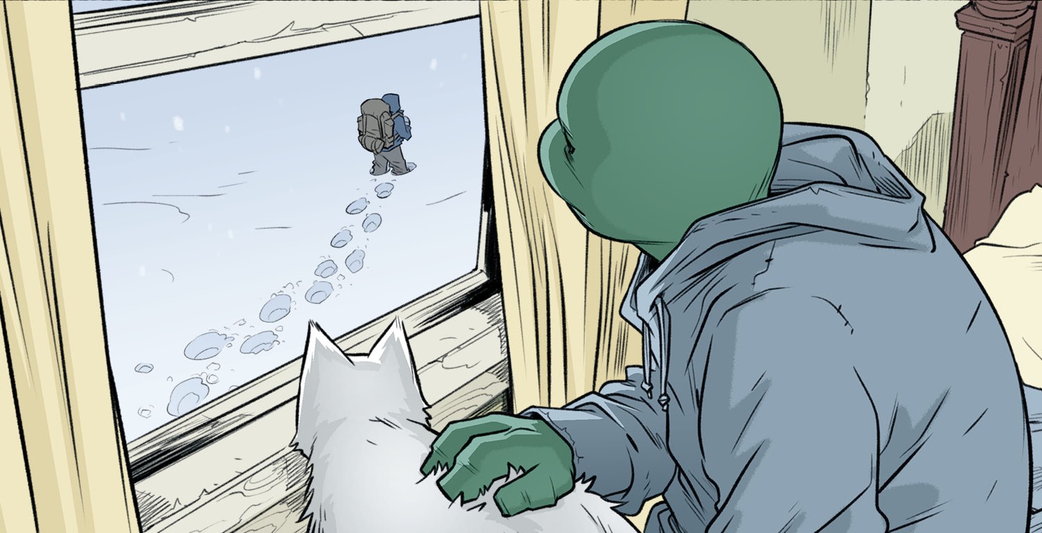 Dans les bureaux de la mairie, April essayait désespérément de contacter les tortues à Northampton. Personne ne répondait. Dans la cuisine, Michelangelo passait à côté du téléphone, et l’ignorait malgré la sonnerie. Il restait avec Klunk dans ses bras. Donatello essayait de se rapprocher de ses frères au petit déjeuner, en vain. Michelangelo ignorait tout le monde, enfermé dans le mutisme. Leonardo n’était guère plus bavard et doutait qu’ils puissent réellement réparer ce qui était brisé. Voyant que la situation n’évoluait pas, bien au contraire, Donatello décidait de faire son sac et de quitter la ferme. À une fenêtre, Michelangelo le regardait s’en aller dans la neige.