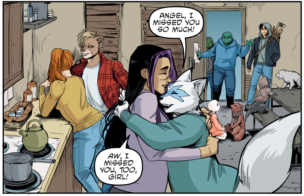 Les tortues recevaient un invité ; Casey Jones venait leur rendre visite pour la première fois depuis le retour des ninjas à Mutant Town. Le garçon était impressionné par le refuge, le dojo et un nouveau groupe de soutien qui venait d’ouvrir pour les mutants, et où se rendaient Jennika et Mona Lisa. Il devait toutefois rester prudent, les humains n’étaient pas les bienvenus, il valait mieux pour lui ne pas se faire voir. À l’intérieur du refuge, Alopex retrouvait Angel, également de visite. Au même instant, un dendrobate bleu rentrait, demandant où se trouvait la réunion du groupe de soutien.