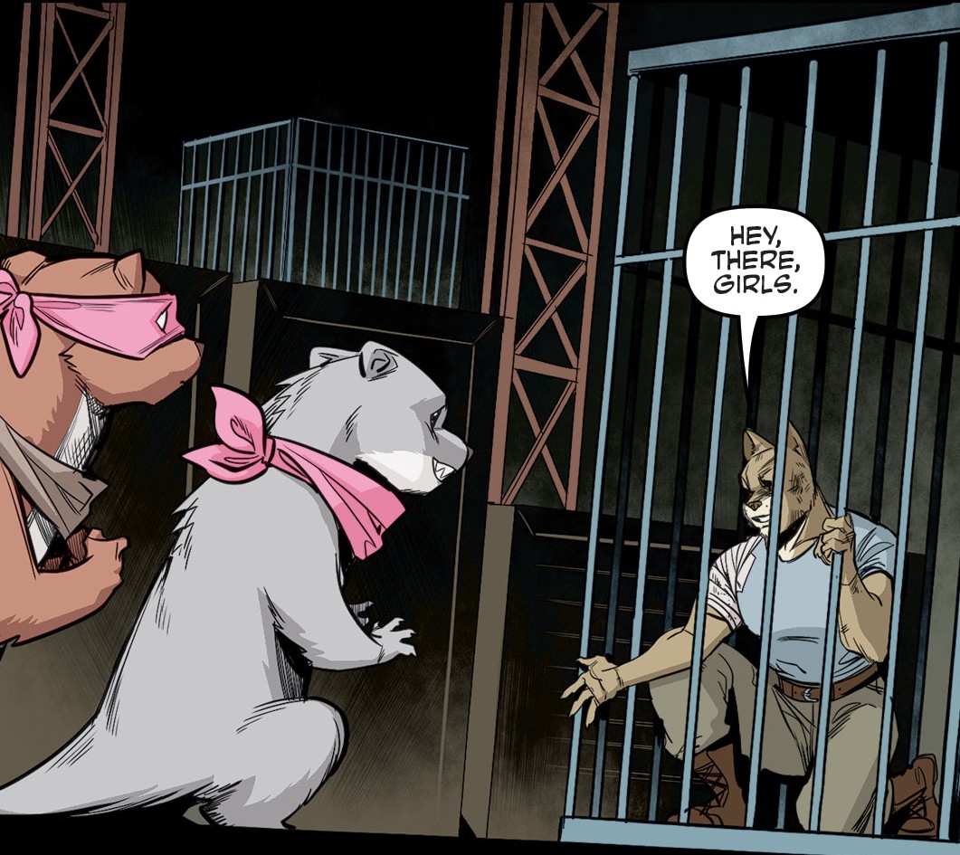 Le chat ne voulait rien dire. Était-ce Mondo Gecko, que personne n’avait plus vu depuis des mois ? Quelqu’un d’autre ? Un « simple ami » répondait Hob, qui se terrait dans le silence. Il ne disait plus un mot. Sans obtenir plus de résultat, Leonardo raccrochait la clé de sa cellule et s’en allait, craignant que d’autres mutants préparent quelque chose.