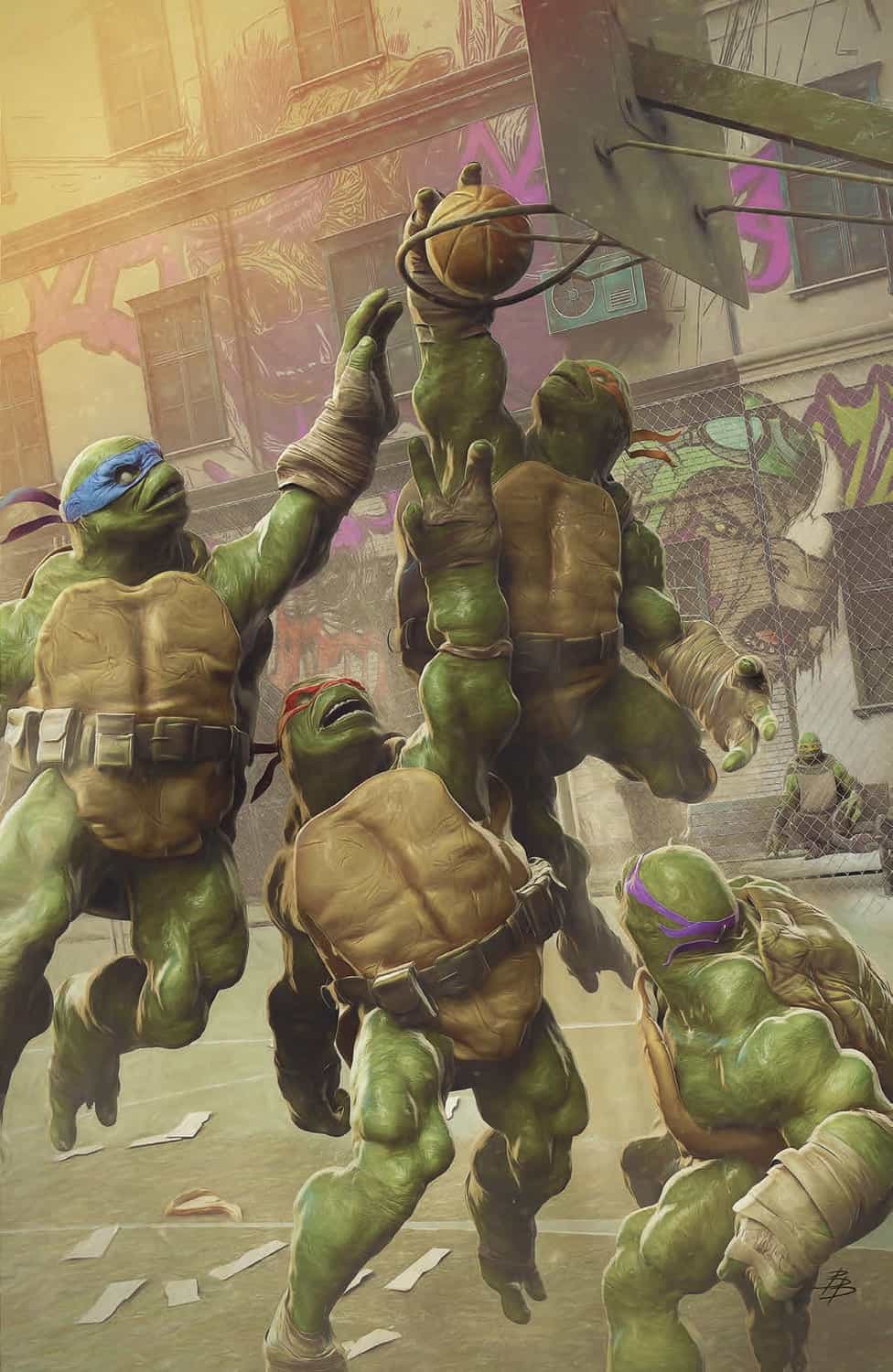 • La Cover RI A de Alex Sanchez est une couverture wraparound, imprimée sur la première et la quatrième de couverture, à la manière notamment de ce que proposait les premiers comics de Mirage. L’illustration reprend d’ailleurs celle du Tales of the TMNT (Vol. 1) #6.