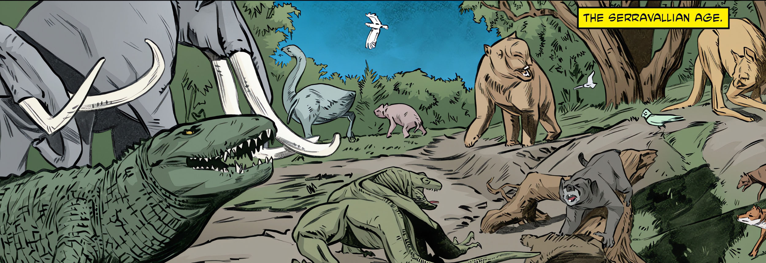 - L’autrice Sophie Campbell est passionnée par les périodes anciennes. Principalement le Mésozoïque, où vivaient les dinosaures. Mais aussi d’autres plus récentes, proposant beaucoup de possibilités scénaristiques, comme le très méconnu Serravalien.