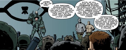 À Burnow Island, Stockman hallucinait des dernières nouvelles de StockGen. En communication avec Chet Allen, il apprenait l’évasion récente du Specimen 6 (TMNT Micro-series April). Après Splinter et les tortues, c’en était de trop, d’autant plus que les médias s’étaient saisis de l’affaire, en plus de la police. Rien ne semblait pouvoir les rapprocher de StockGen, mais Baxter n’était pas rassuré pour autant. Ils n’avaient plus qu’à espérer que Slash fasse ce pourquoi il avait été conçu, chasser des mutants. Le scientifique n’avait aucun moyen de rentrer sur New York, son travail sur le Technodrome l’occupait déjà à temps plein. Il sentait que Krang préparait quelque chose de bien plus important qu’il ne semblait vouloir le dire.