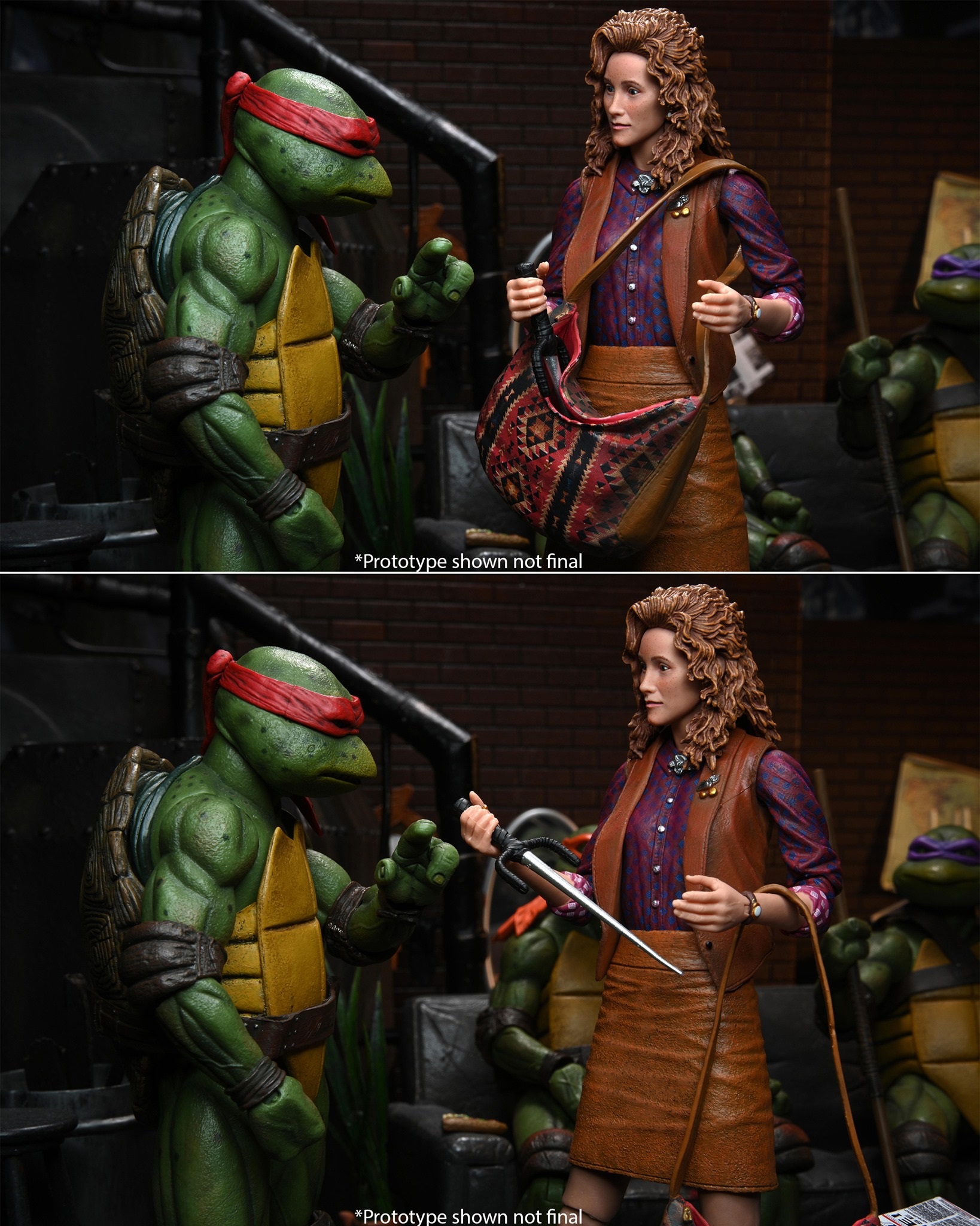 La figurine d’April était très attendue par les fans, notamment lorsque le fabricant a laissé entendre qu’il comptait bien étendre sa gamme et aller le plus loin possible. Mais les problèmes de droits d’image des acteurs et de Warnes Bros. ne permettaient pas de réaliser de figurines aux visages identiques à ceux du film. La création de la figurine de Casey Jones avait été une vraie frustration car son masque ne pouvait être retiré dans sa première version.