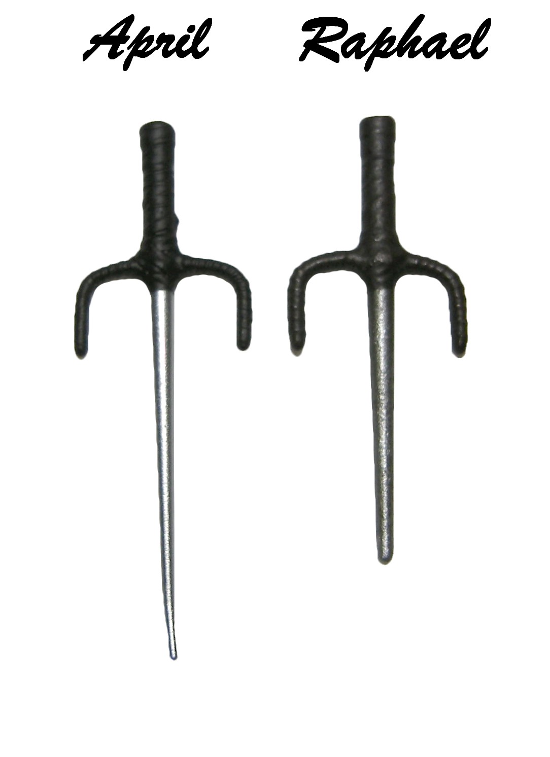 Le saï qui accompagne la figurine est différent de celui de Raphael sorti précédemment. Plus long, il dispose notamment de plus de détails, principalement au niveau des bandelettes de cuir du manche. C’est très appréciable !