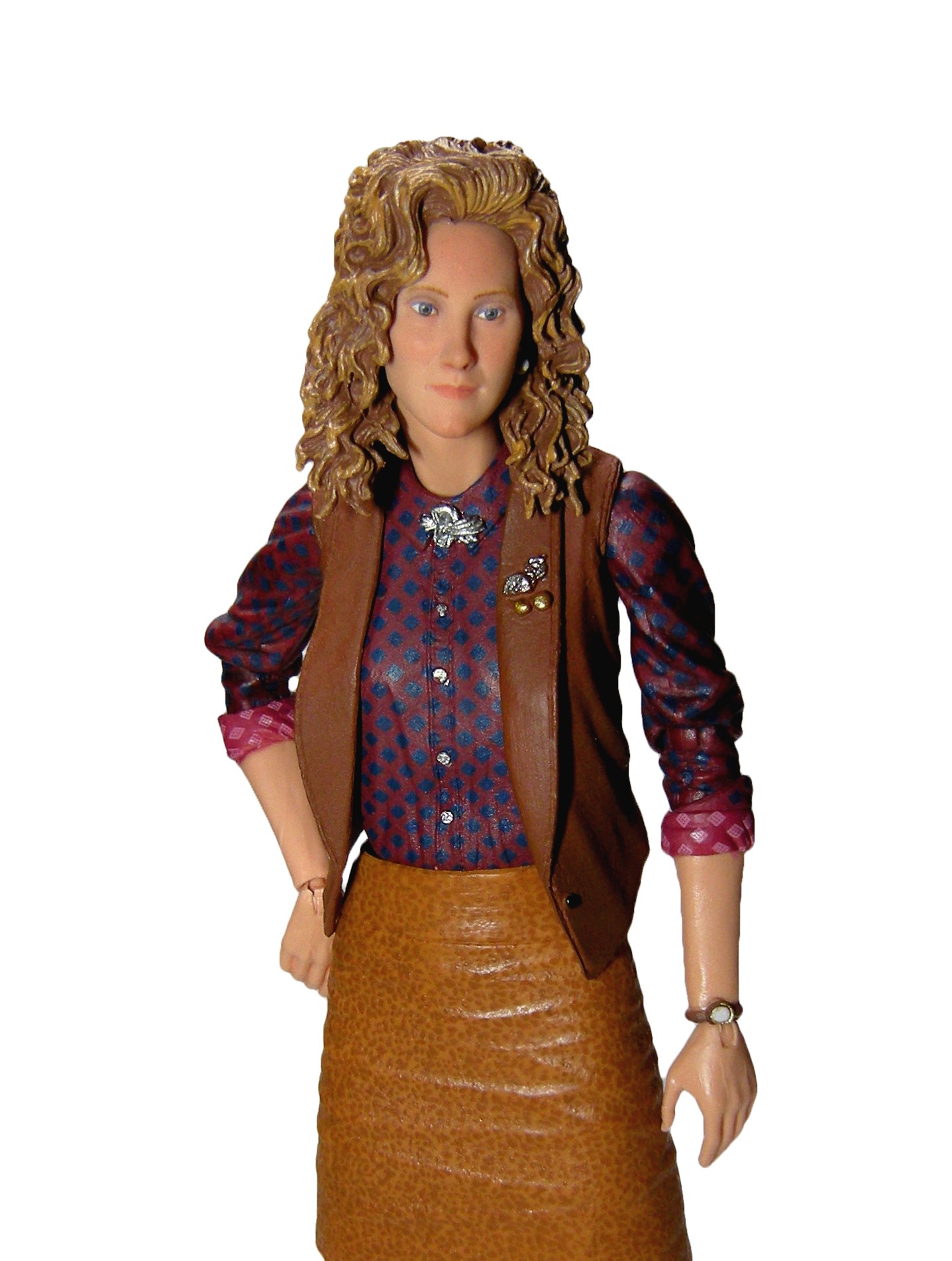 Les traits du visage sont, comme nous l’avons vu dans la section de la création de la figurine, très fidèles à ceux de l’actrice Judith Hoag, notamment pour l’échelle. Ses cheveux sont réalisés dans un plastique souple, facilitant les mouvements de la tête et permettant de les ajuster sur les épaules de la jeune femme.