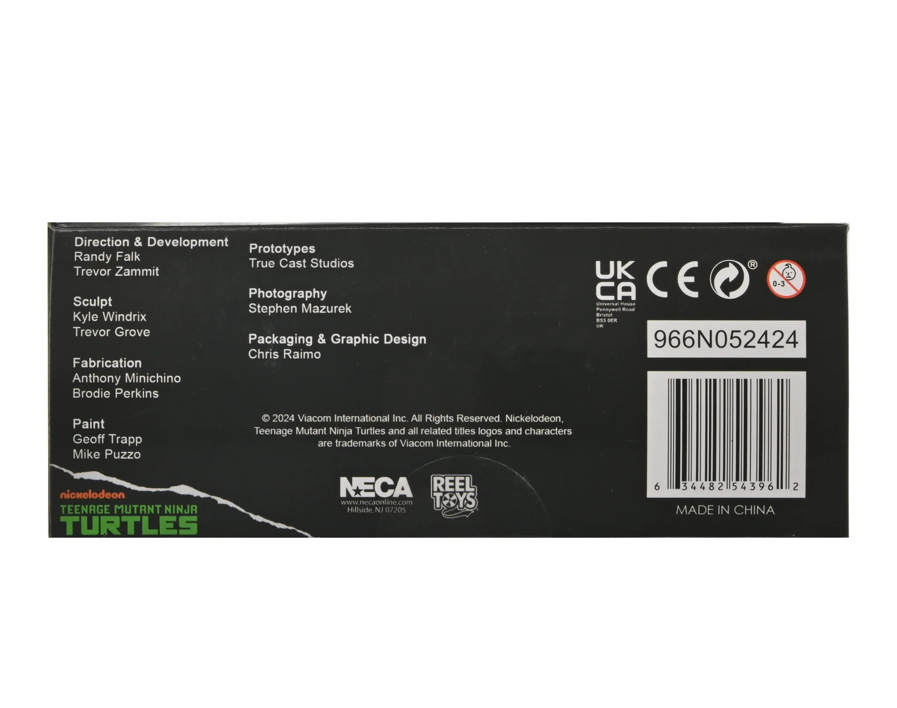 L’illustration à l’avant du blister rappelle une benne à ordures, avec quelques graffitis, traces d’usures ci et là et papiers d’avertissements. Nous retrouvons même une tête de tortue ! Ou encore le fameux « Foot stinks » écrit sur le flanc du Party wagon de Playmates Toys. Comme bien souvent, le blister est orné de nombreuses photographies de Stephen Mazurek.