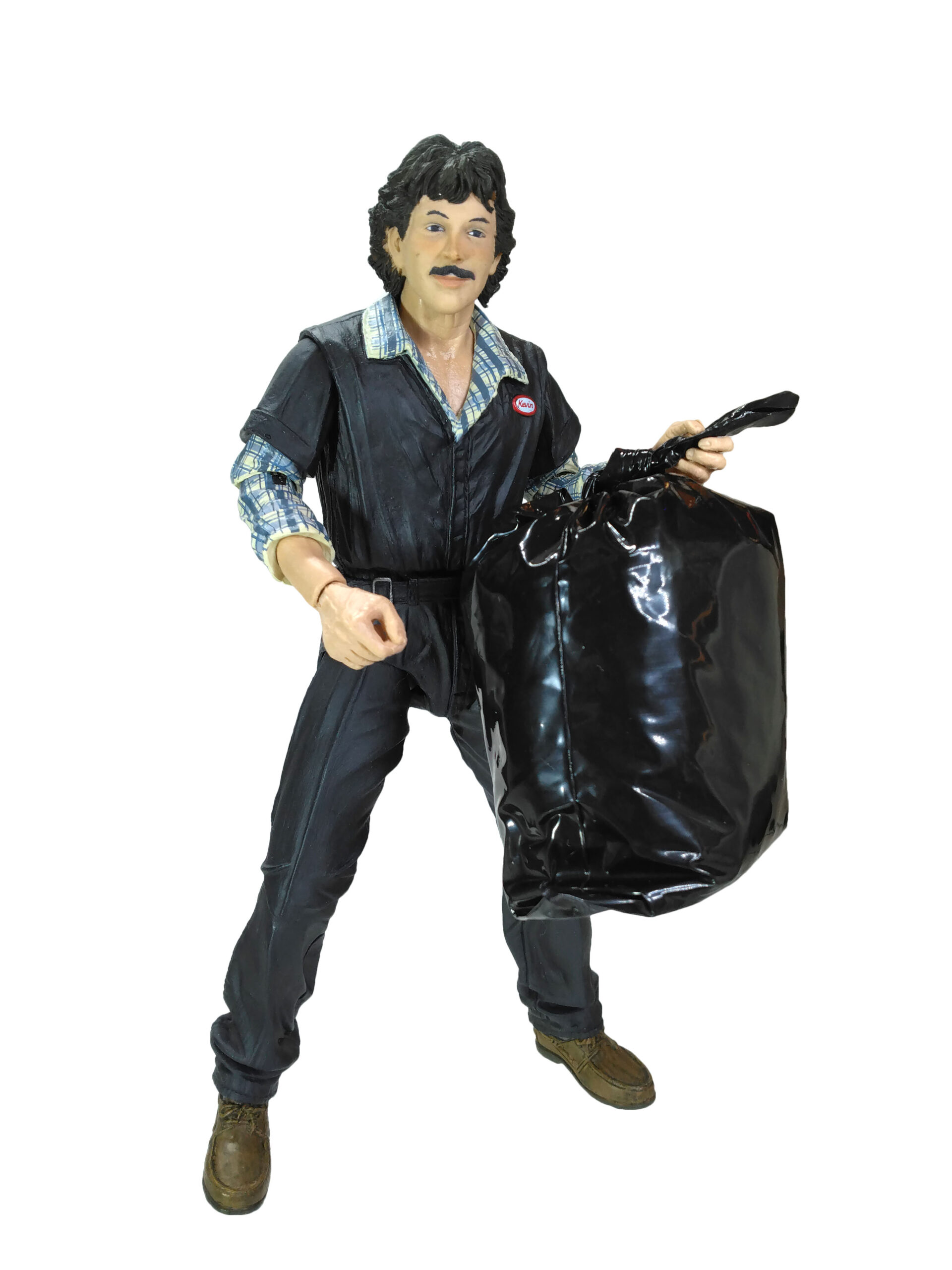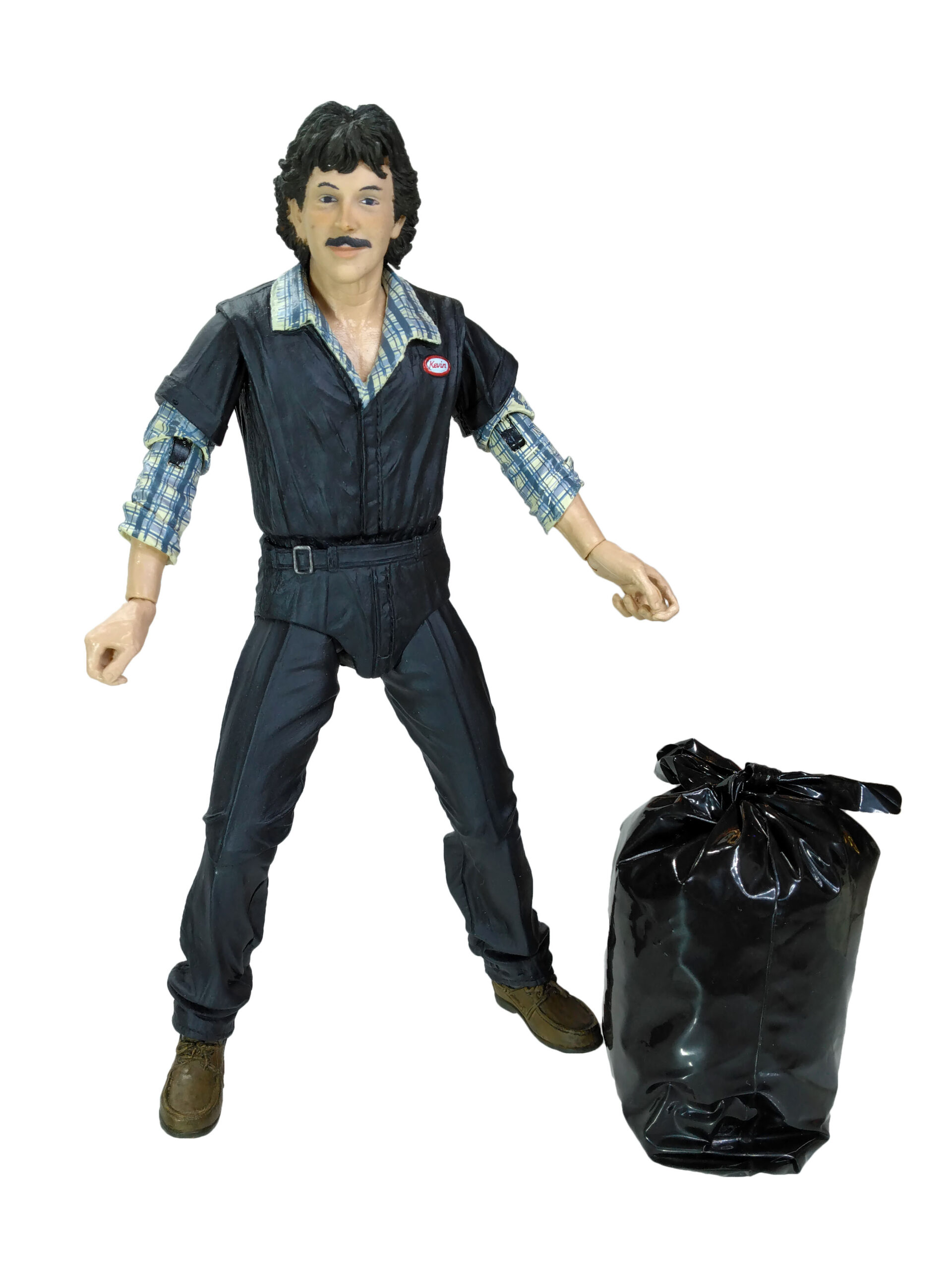 Avec tout cela, nous finissons par oublier le rôle campé par Eastman dans le film. Ce pourquoi il est apparu à l’écran. Il est un éboueur de New York. Si le personnage n’apparaît pas à l’écran avec des accessoires particuliers, NECA a fourni néanmoins un sac poubelle. Celui-ci est fait d’un plastique fin et noir, assez brillant. L’intérieur est gonflé par de la mousse et le fond par une petite plaquette, probablement de carton. Le haut est noué mais il est hélas assez difficile de faire tenir ce sac entre les mains, spécifiquement dédiées au dessin, de la figurine. Le tout est très réaliste.