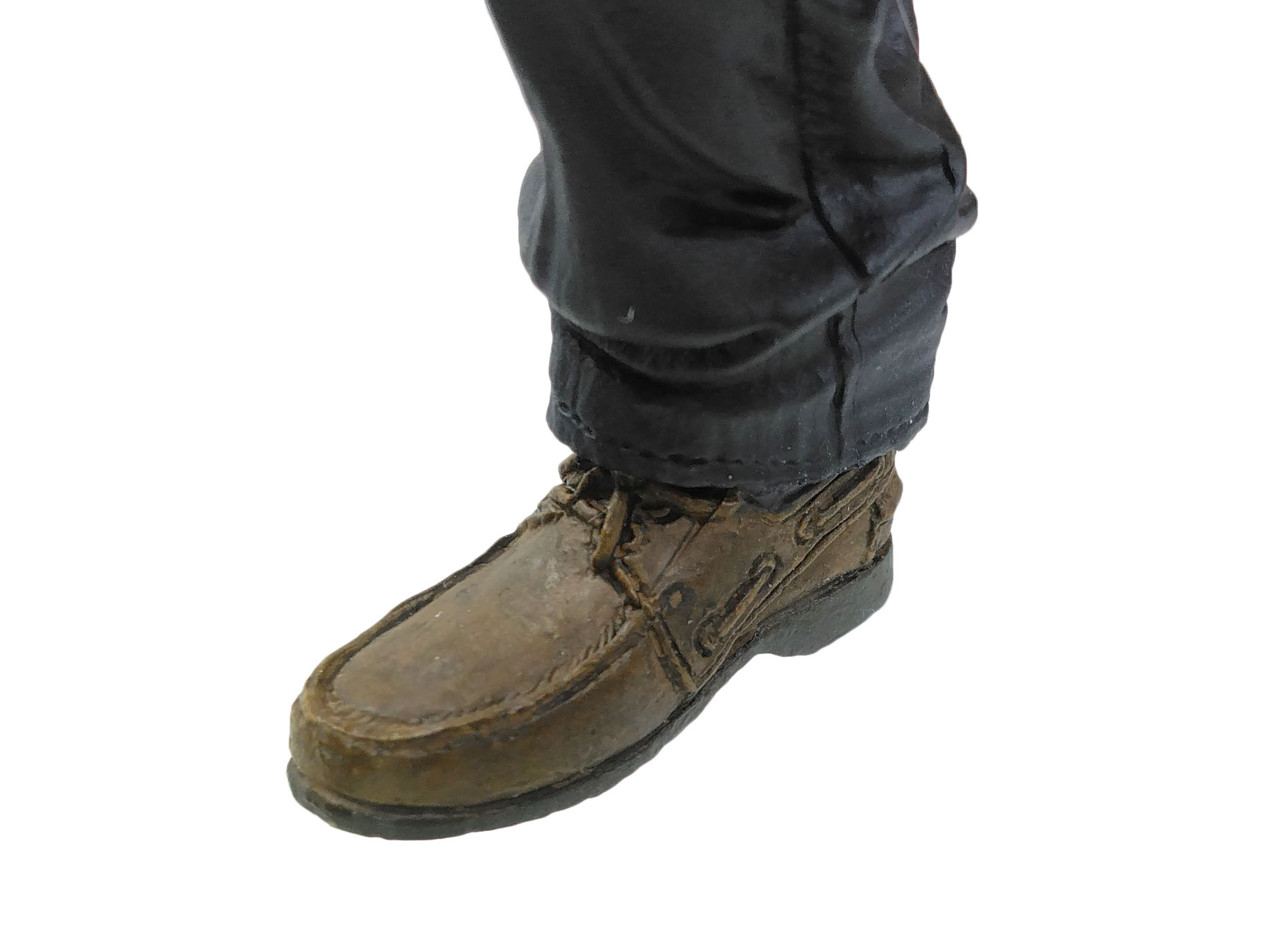 La combinaison d’Eastman est grise/bleue foncée avec de très rares touches plus claires sur les plis pour renforcer ces reliefs. C’est surtout du côté de la chemise rayée qu’un très bon travail a été effectué, avec des rayures bleues foncées et claires, certaines épaisses, d’autres fines. Un travail remarquable !