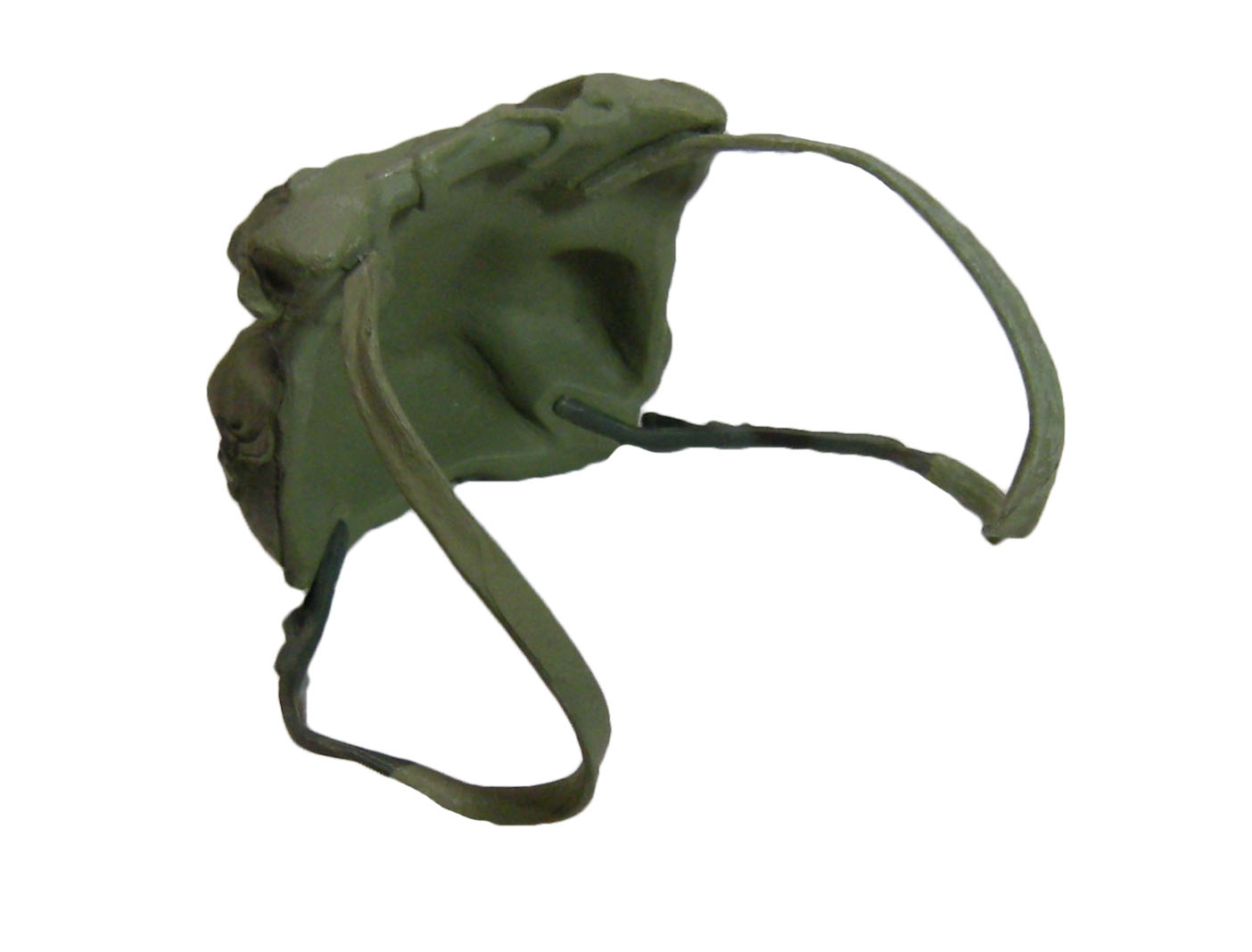 Le sac de la tortue peut se retirer. Ses lanières sont collées et suffisamment amples pour le faire sans problème. Il s’agit d’une pièce de plastique souple, finement sculptée, et creuse du côté de la carapace pour en épouser son relief.