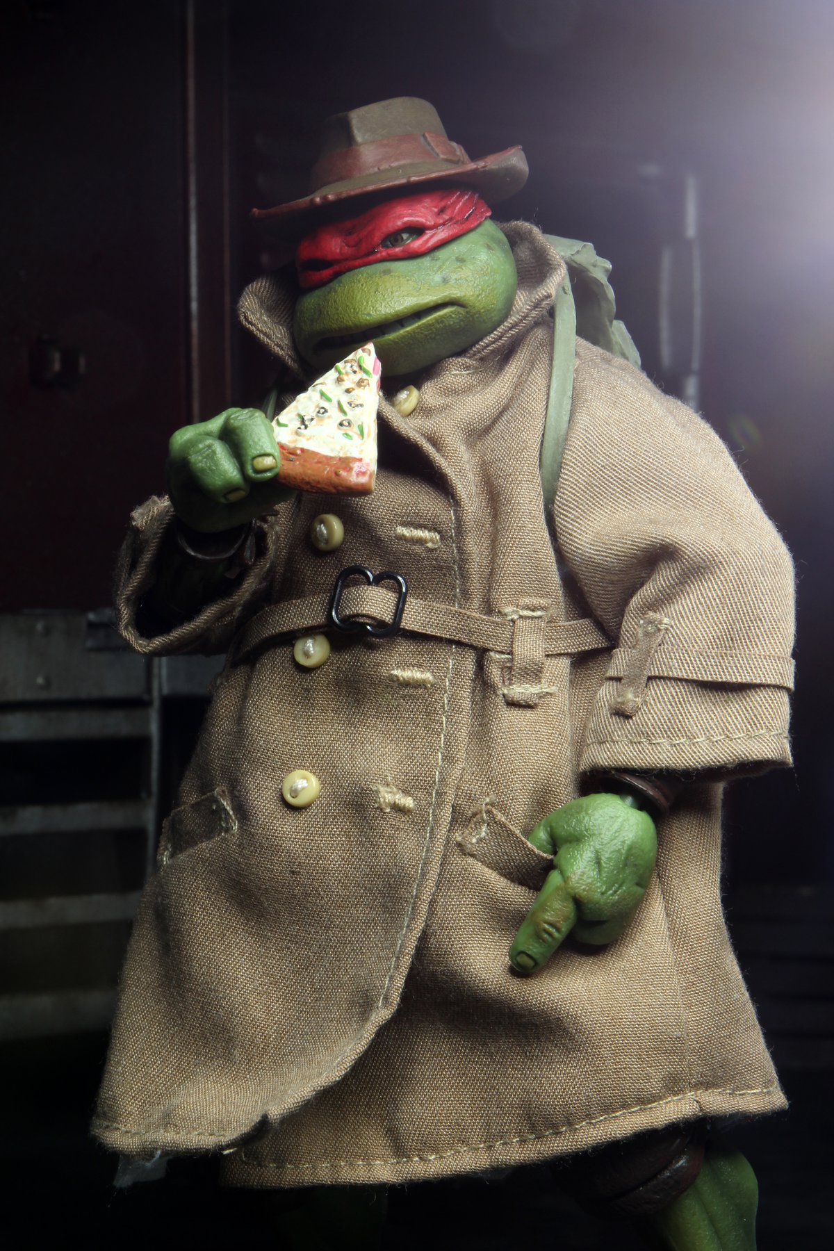 Il est possible d’ôter le manteau et d’obtenir une tortue nue ! Le Raphael en dessous, rappelons-le, est identique à la version régulière. Si vous ne le possédez pas encore, il serait donc préférable pour vous de choisir cette version avec trench-coat.