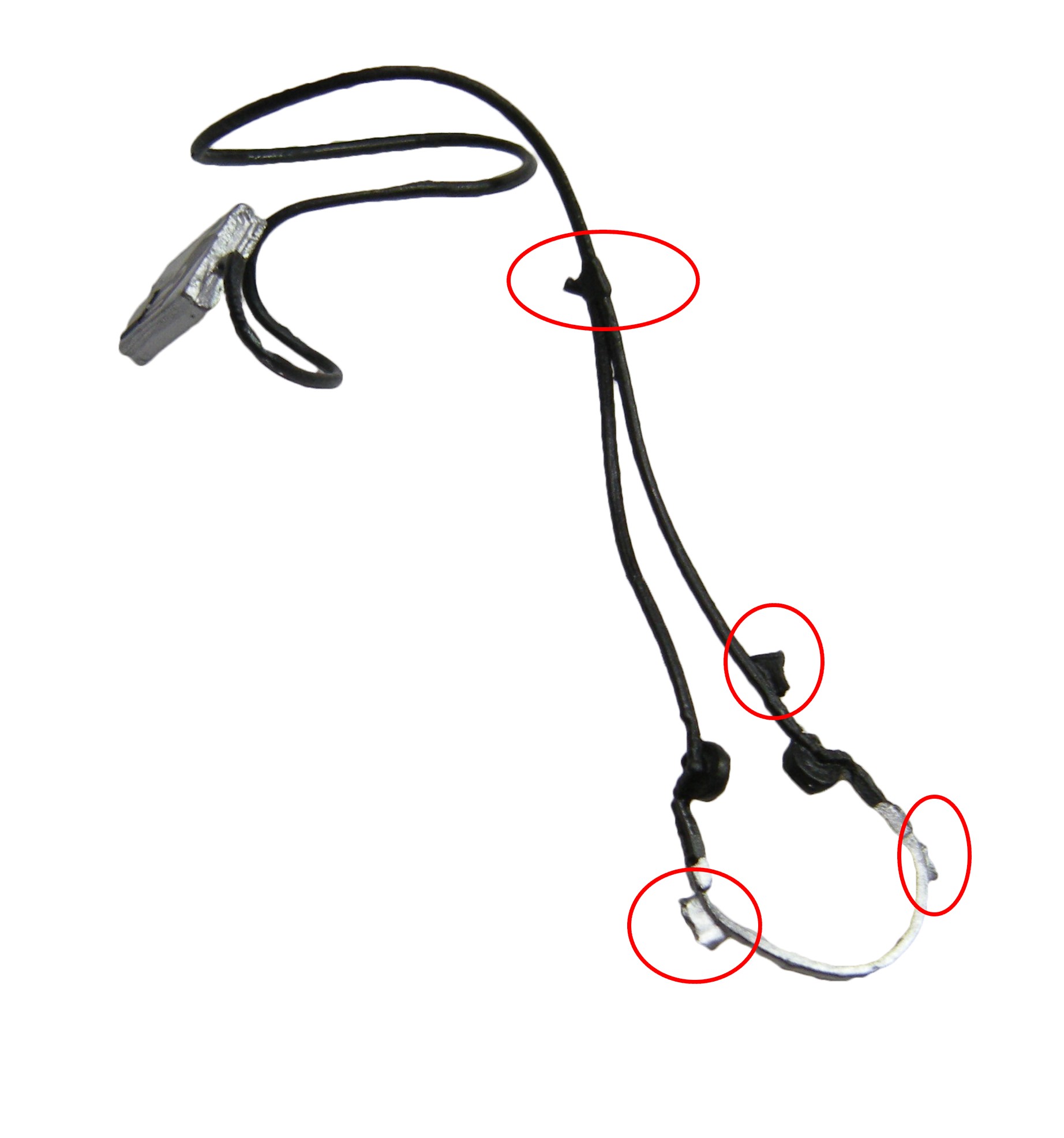 Pour couronner le tout, on retrouve de nombreux déchets du moule. Sur mon exemplaire, ils sont au nombre de quatre… (entourés en rouge sur l’image ci-contre). On peut évidemment les couper au cutter, mais il y aura une absence de peinture… Il n’était pas possible de les couper puis de les peindre ? C’est la crise ou bien ??