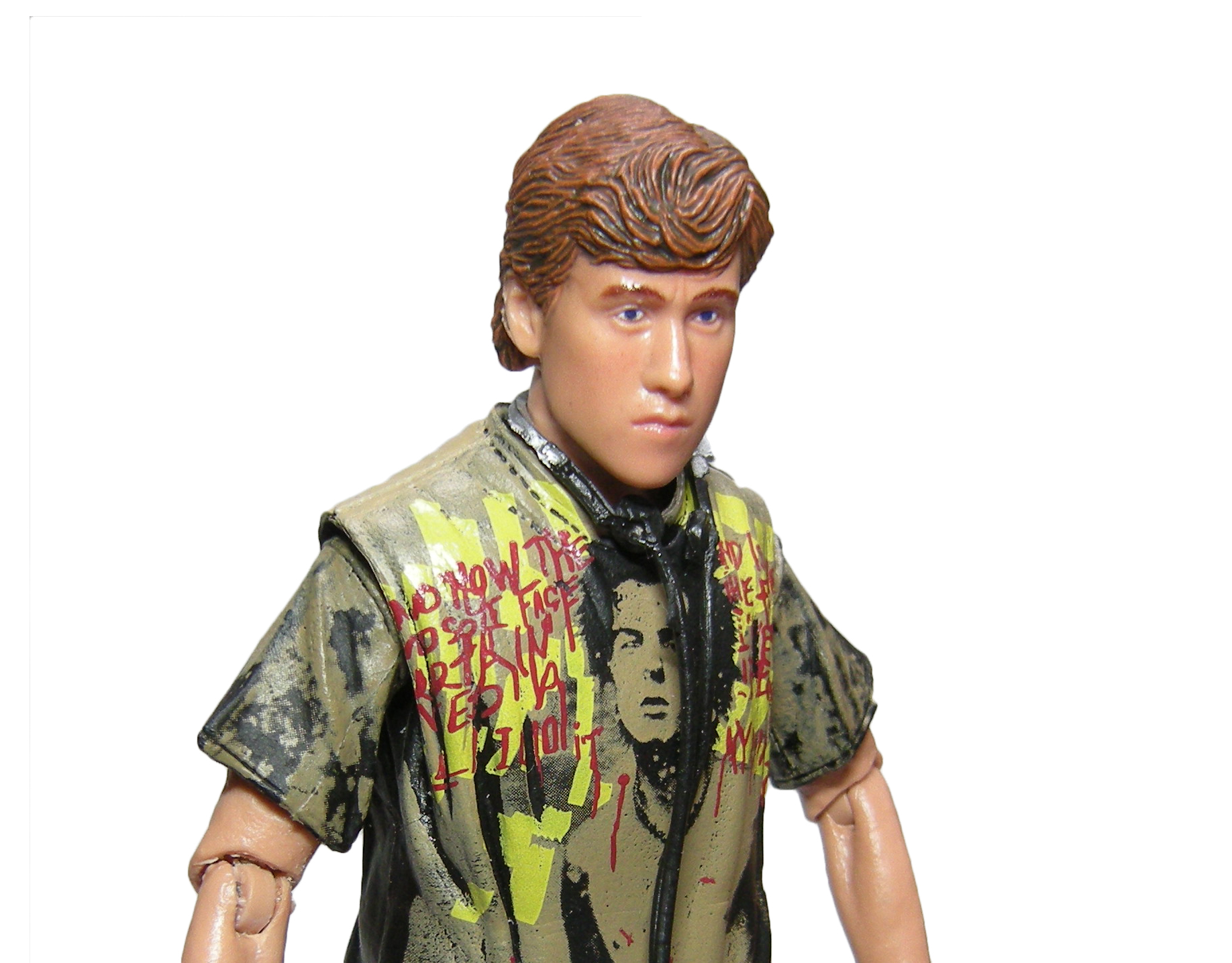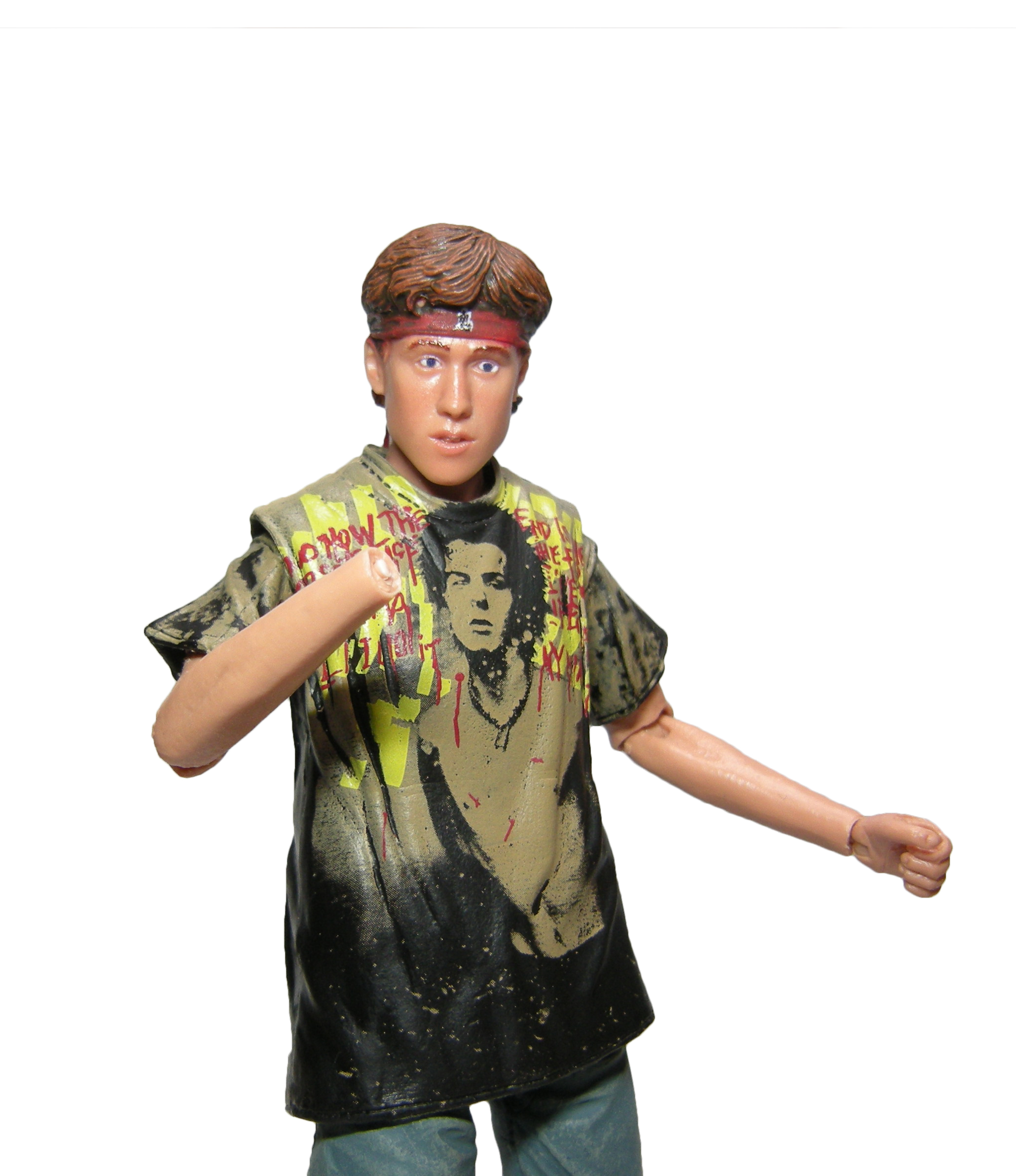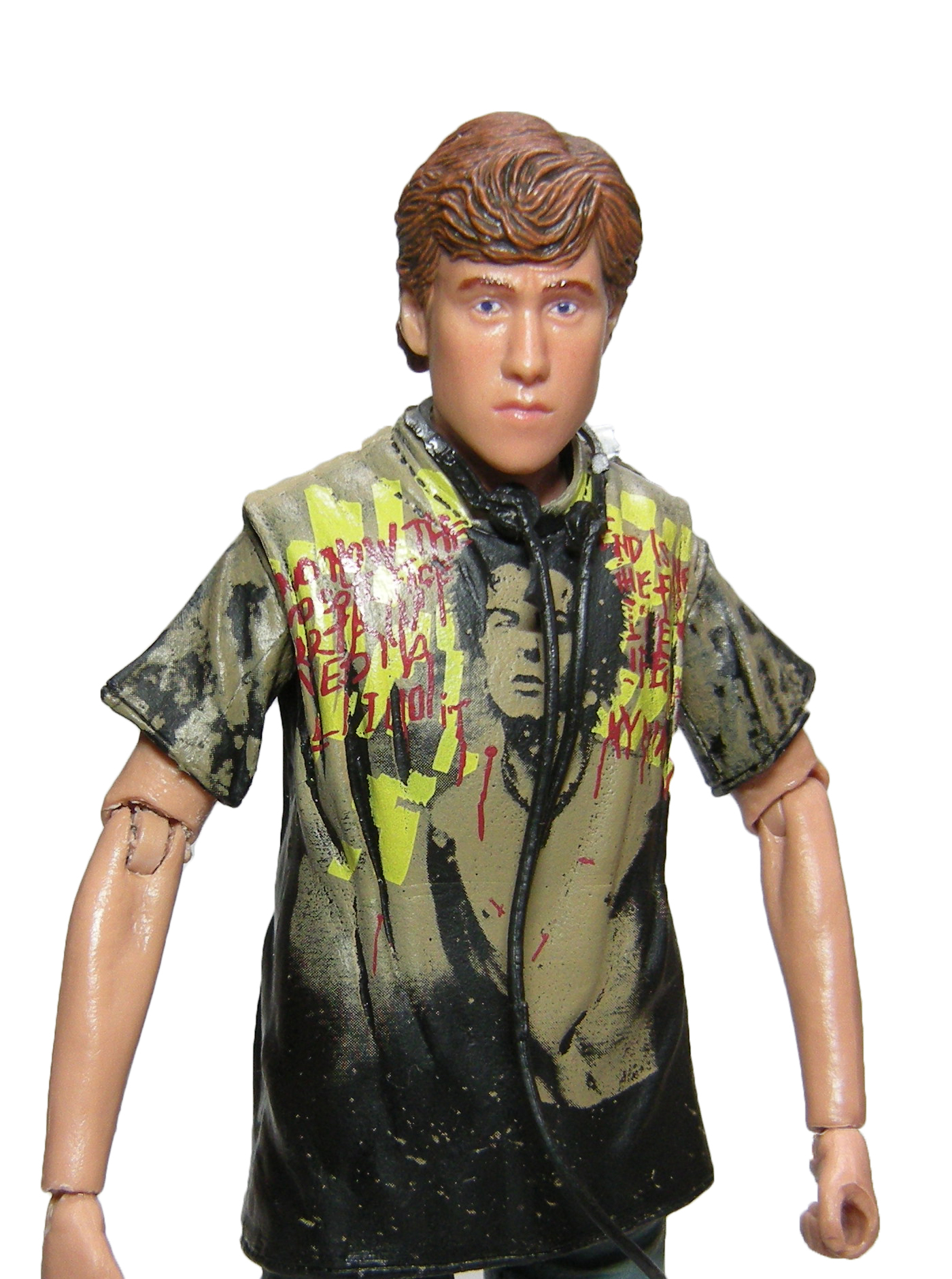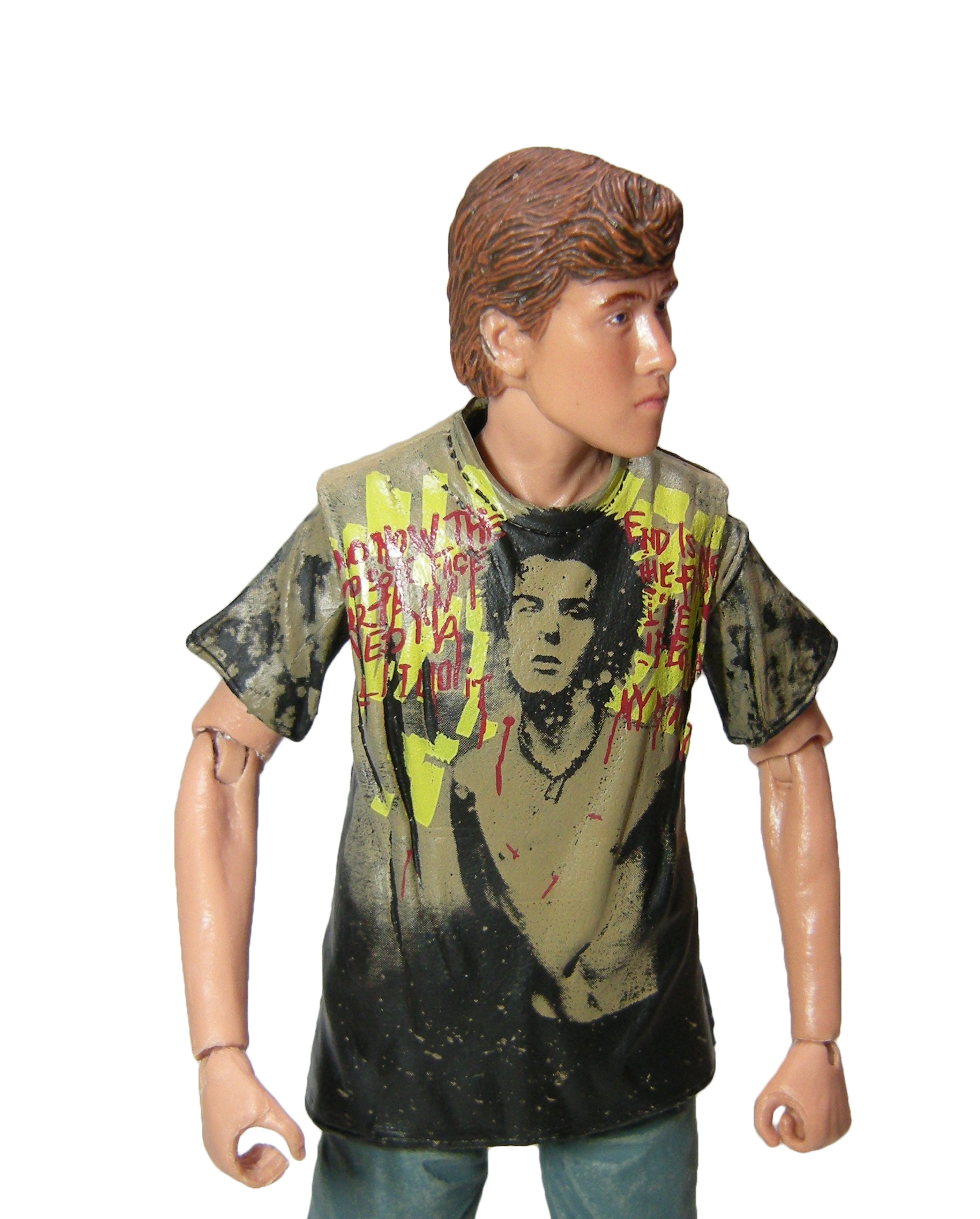 Le seul élément réellement remarquable est le t-shirt et ses motifs reprenant le groupe des Sex Pistols. Le dessin est identique à celui du film. Mais une fois encore, NECA pêche sur les finitions. Le dos est purement dégueulasse. La peinture laisse les plis apparents au lieu de les recouvrir ! C’est un effet voulu visiblement, mais qui est vraiment raté. Le t-shirt n’est pas censé avoir des tâches noires dans le dos dans le film.