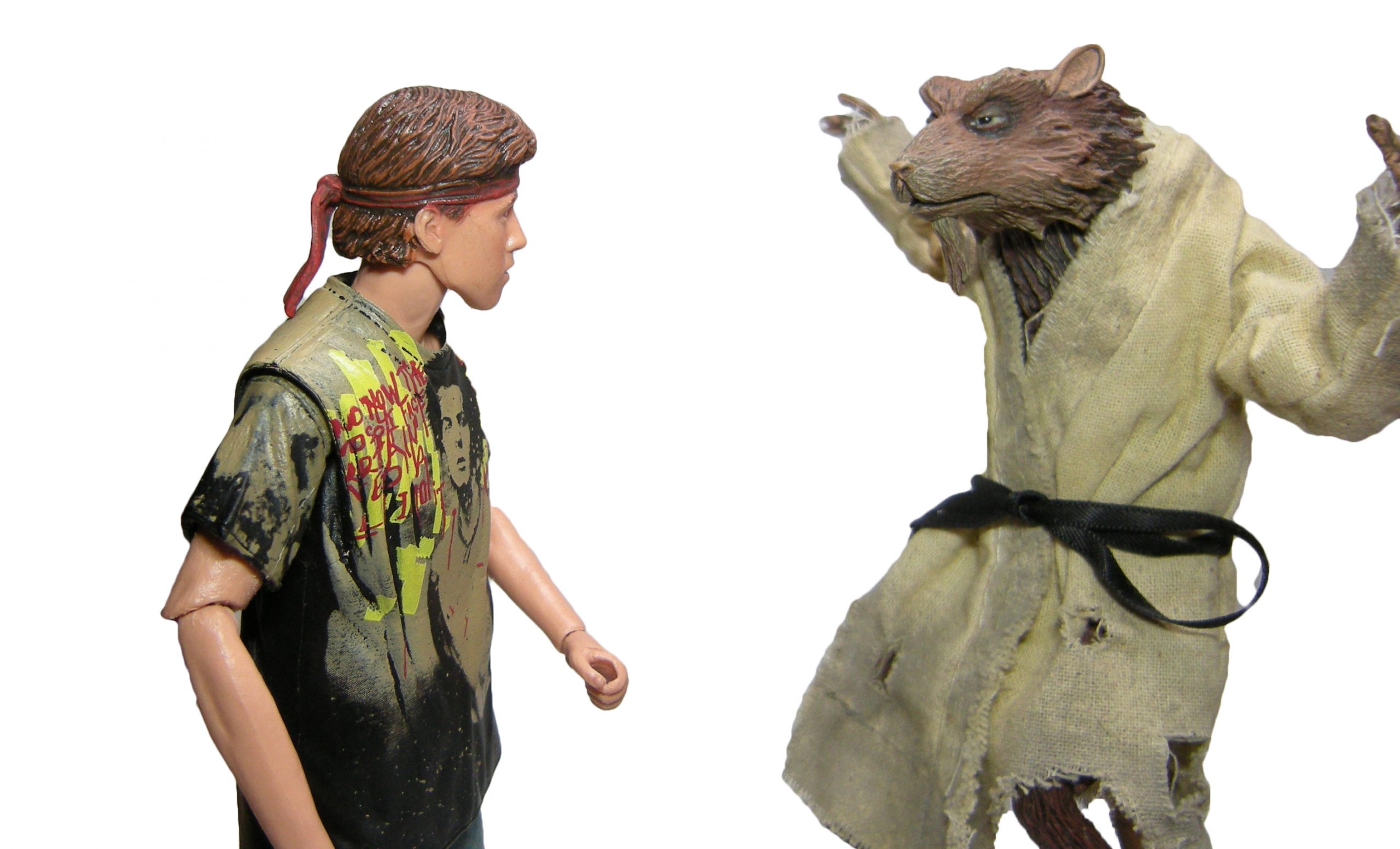 Les têtes sont totalement différentes. C’est peut-être le seul vrai effort réalisé sur cette figurine d’ailleurs. L’une présente un Danny stoïque, l’autre un Danny surpris et dont le front est orné du bandeau du Foot Clan, et dont le symbole japonais signifie « Oni » (démon).