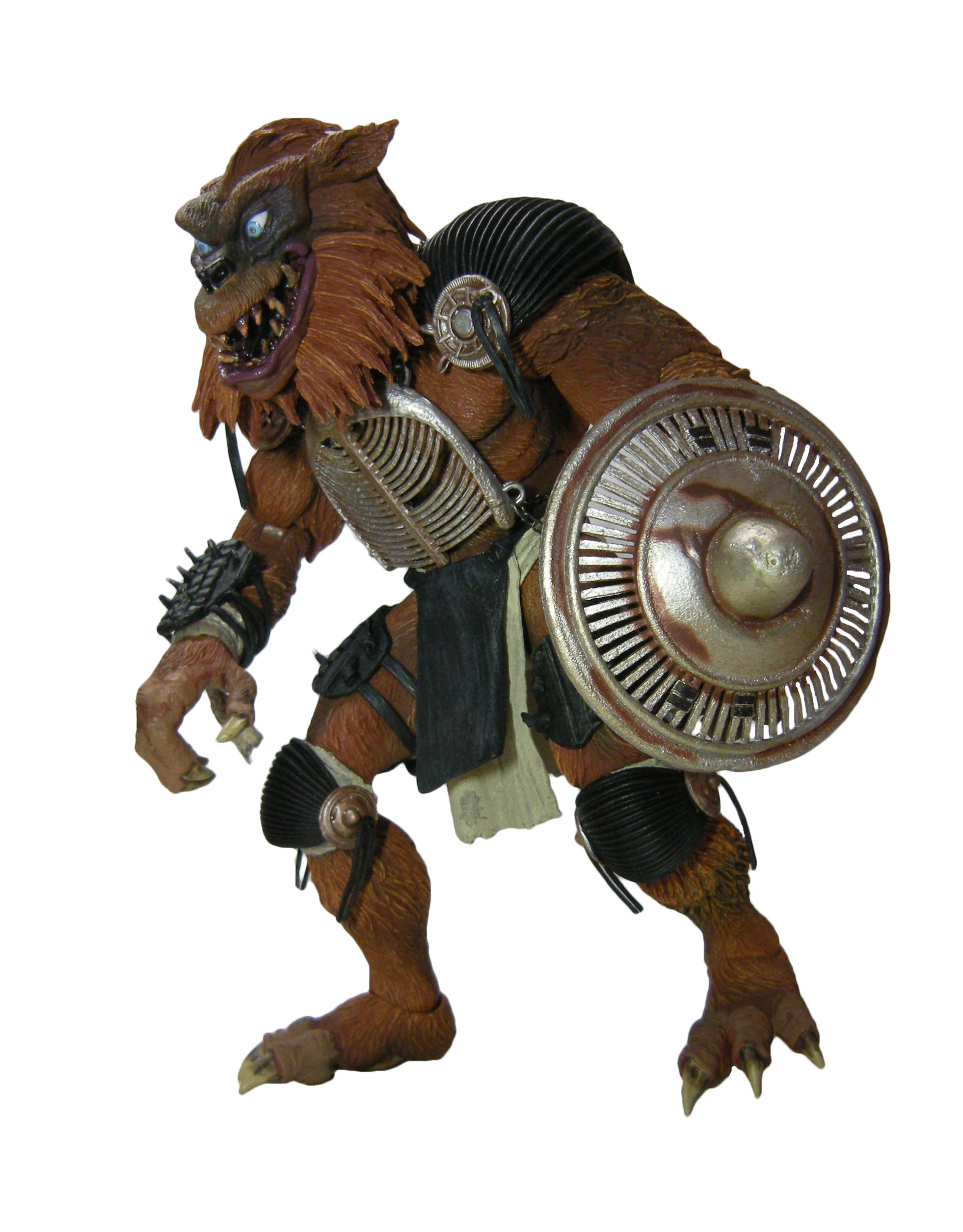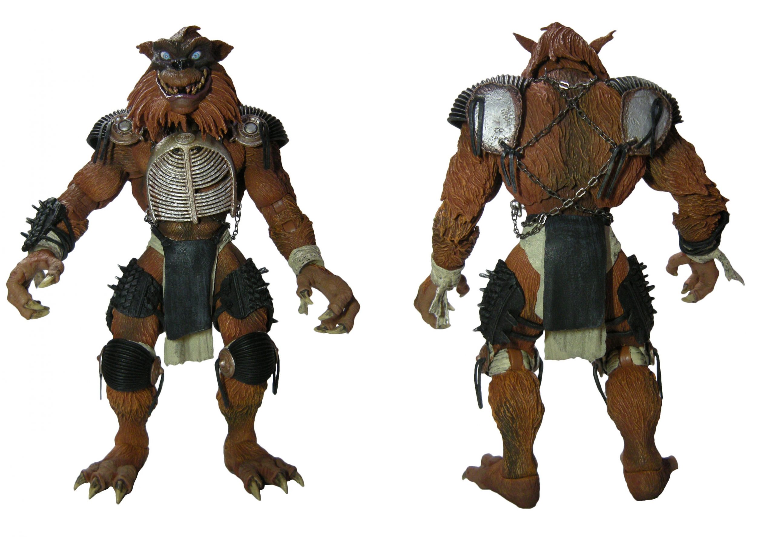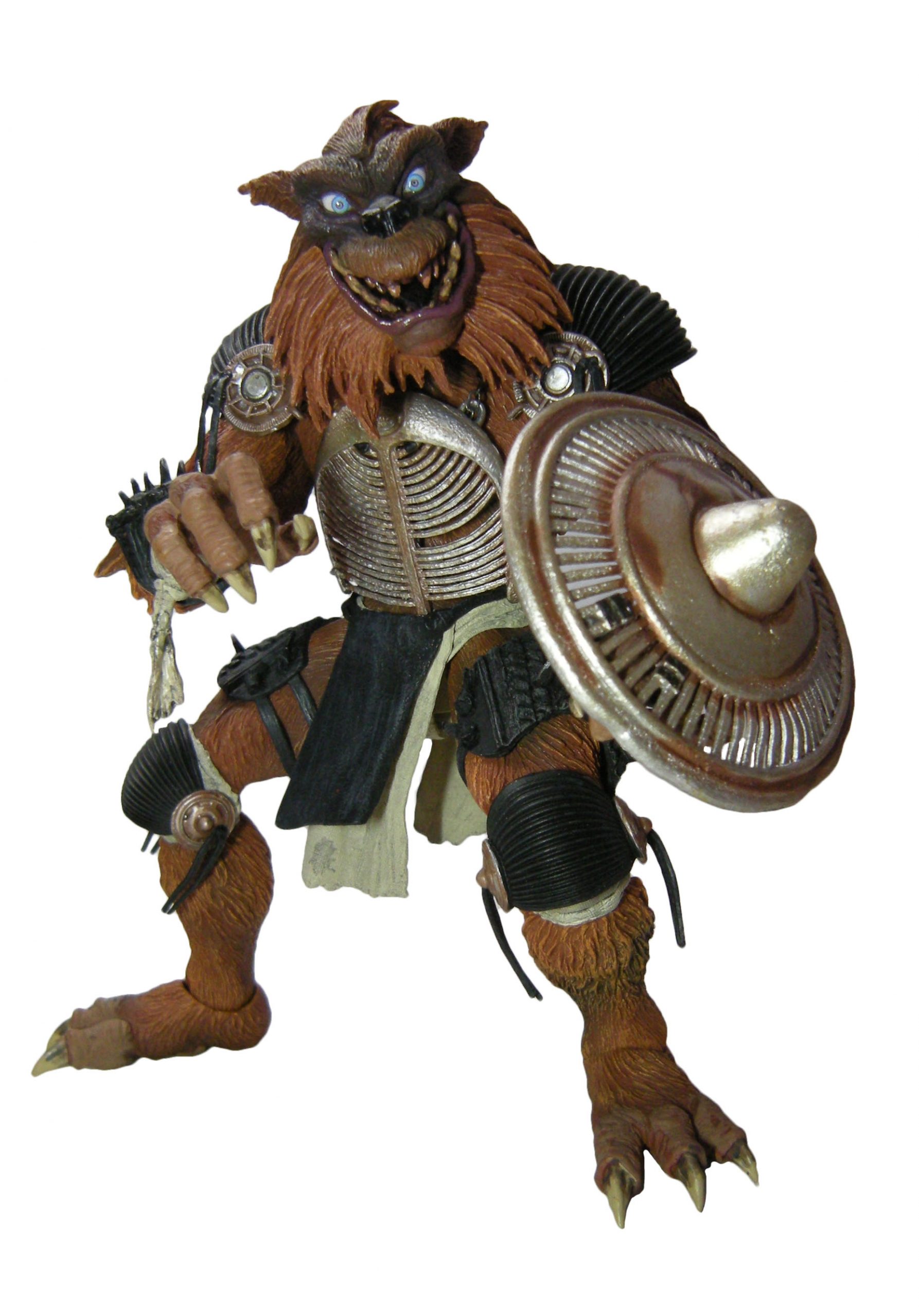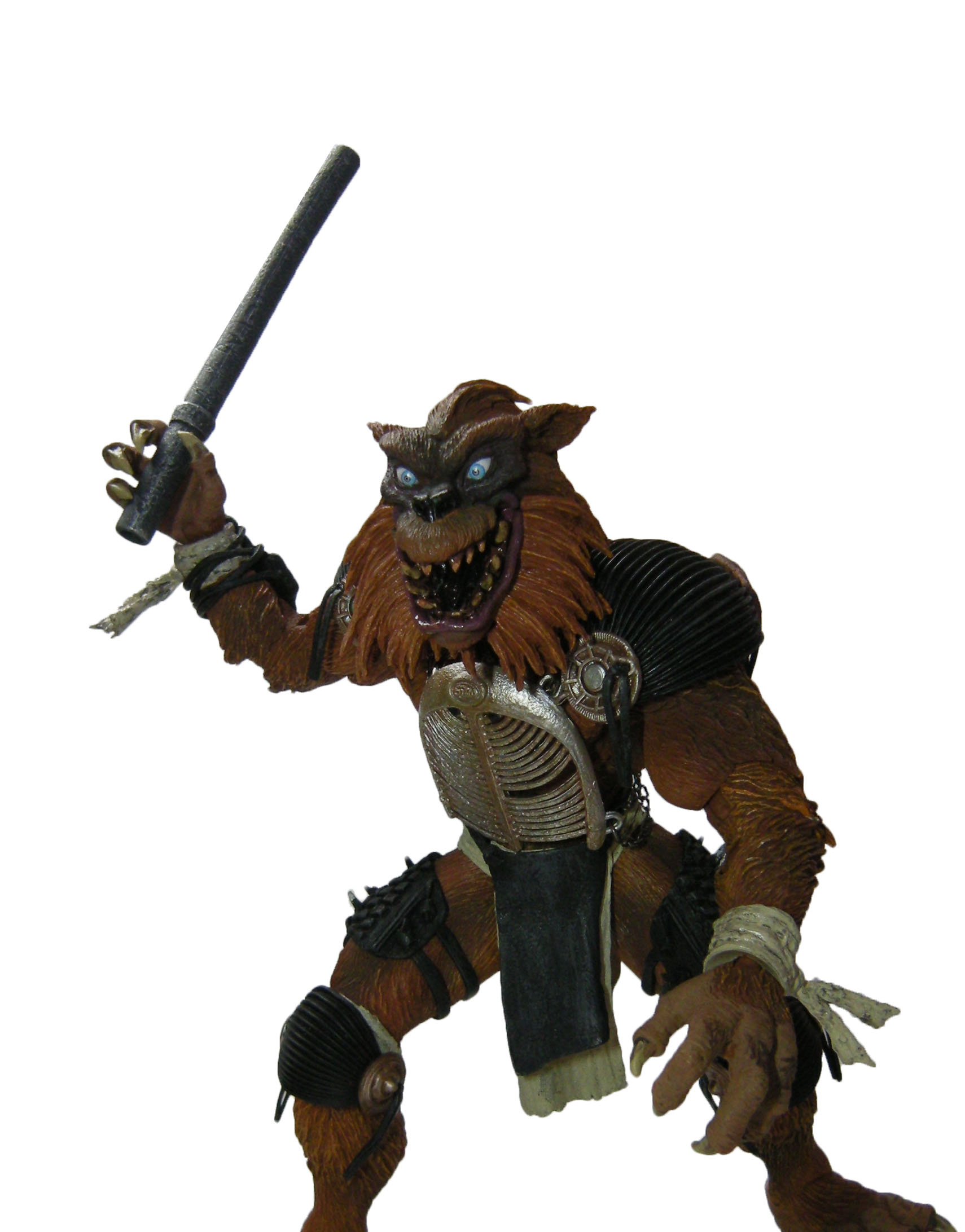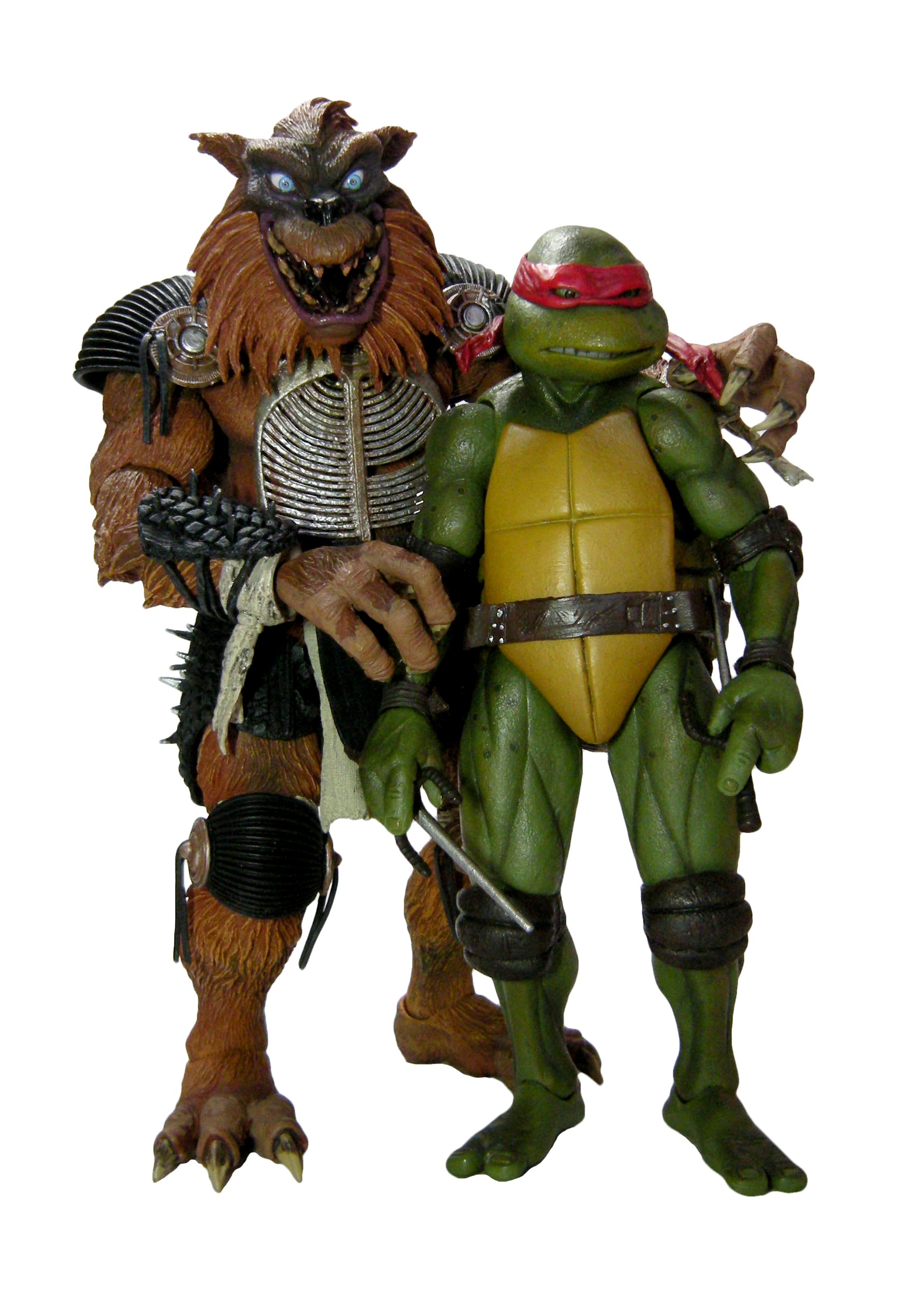 Une fois encore, c’est une très grande réussite pour NECA. Jamais encore nous n’avions eu un Rahzar aussi bien réalisé. Il n’est certes pas aussi réaliste que Tokka, l’absence de vraie fourrure y est pour beaucoup hélas. Mais en dehors de ça, le résultat final est tout simplement superbe. Le détail des finitions de Rahzar fait de cette figurine une œuvre d’art. Je m’emporte ? Peut-être un peu. Mais le travail sur son pelage et la peinture qui vient compléter le tout est génial. L’expression du visage, bien que plus statique que celle de Tokka est très bonne. Mon seul regret est l’impossibilité de retirer l’armure du loup. Je pense que c’est surtout pour des raisons techniques, et ça se comprend finalement.