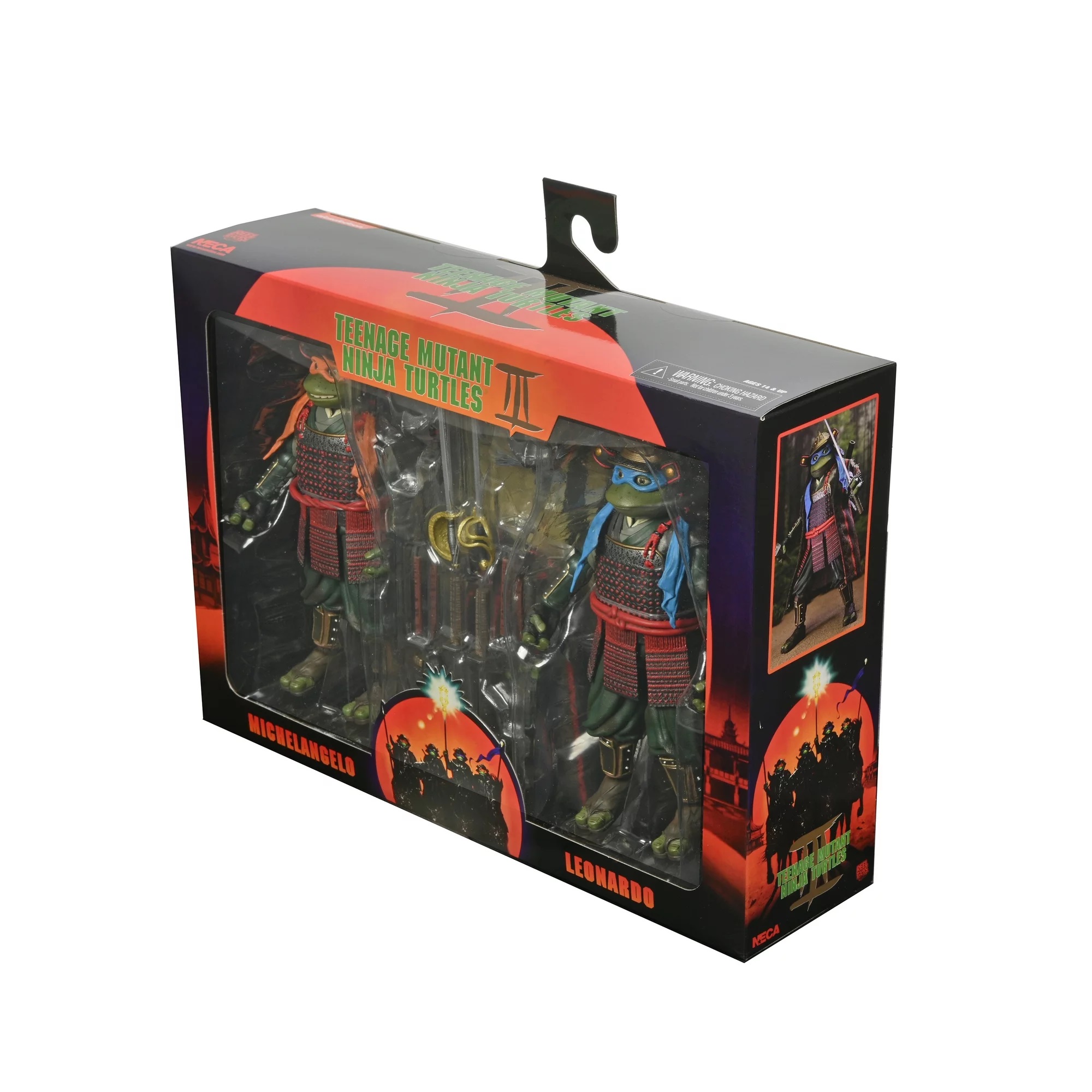 Leonardo et ses frères ont été teasés dans un premier temps le 24 mai 2023 par NECA dans une affiche présentant les quatre tortues à contrejour. Le 14 juin, le fabricant a présenté les premières photos officielles de ces figurines, annonçant l’ouverture des précommandes entre le 21 et le 23 juin. Ces figurines feraient partie d’un 4-pack pour la Comic Con de San Diego, comme les personnages des films précédents. Vendu 150$, les packs étaient proposés tous les jours à partir de 18h. Le premier jour, le pack a été écoulé au bout de trois minutes. Le deuxième au bout de cinq minutes. Le dernier jour, les packs se sont écoulés bien moins rapidement, les plus intéressés étant déjà servis.