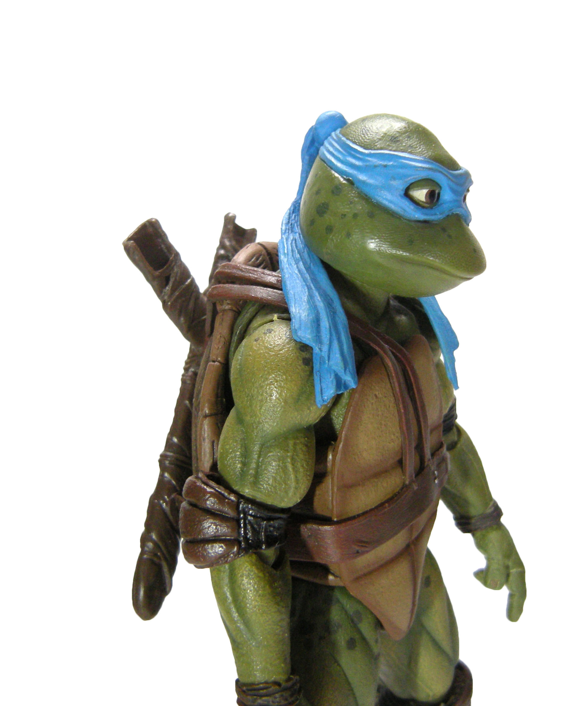 Dans cette version standard, Leonardo ne possède pas de tête alternative. En revanche, vous pouvez retirer celle de la version samurai pour la placer sur les figurines précédemment réalisées. La peinture jure terriblement avec la figurine du film de 1990. La tête va bien mieux au corps du film de 1991. En revanche, cette tête est bien plus volumineuse que les précédentes, et donne un effet de petit corps. Autre problème, la sculpture du corps est très différente entre la conception de All Effects Company et du studio de Jim Henson. Les écailles, mais surtout la peinture ! On n’y est pas du tout.