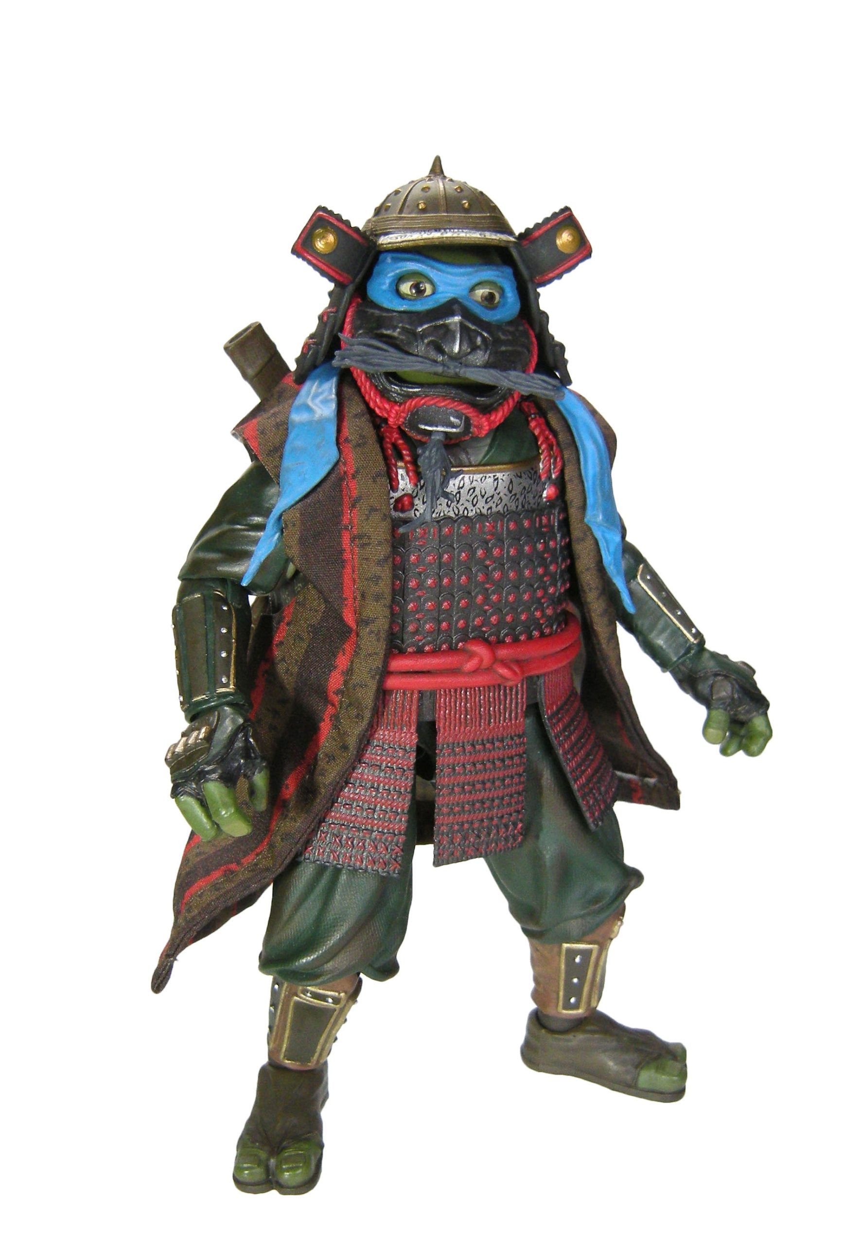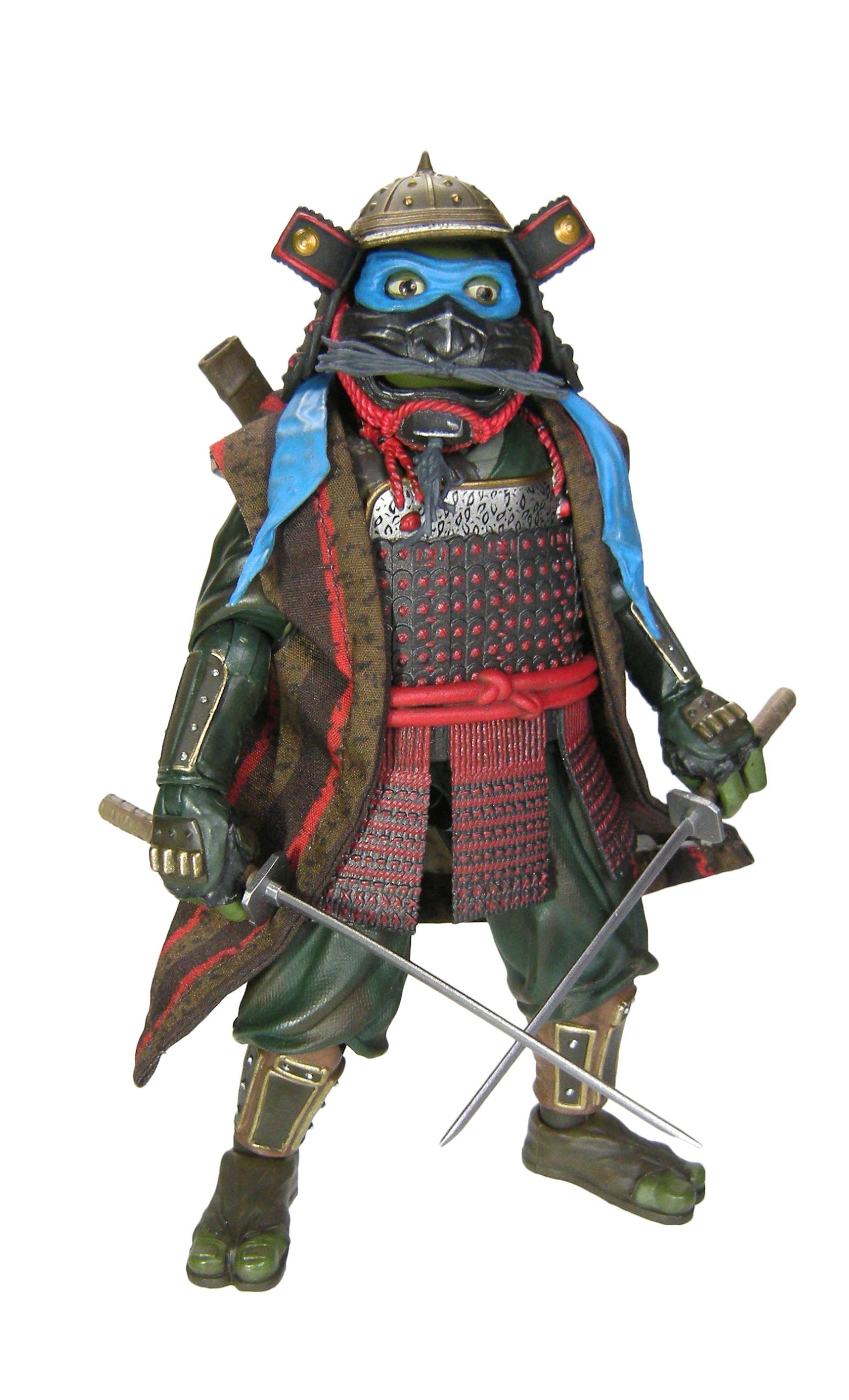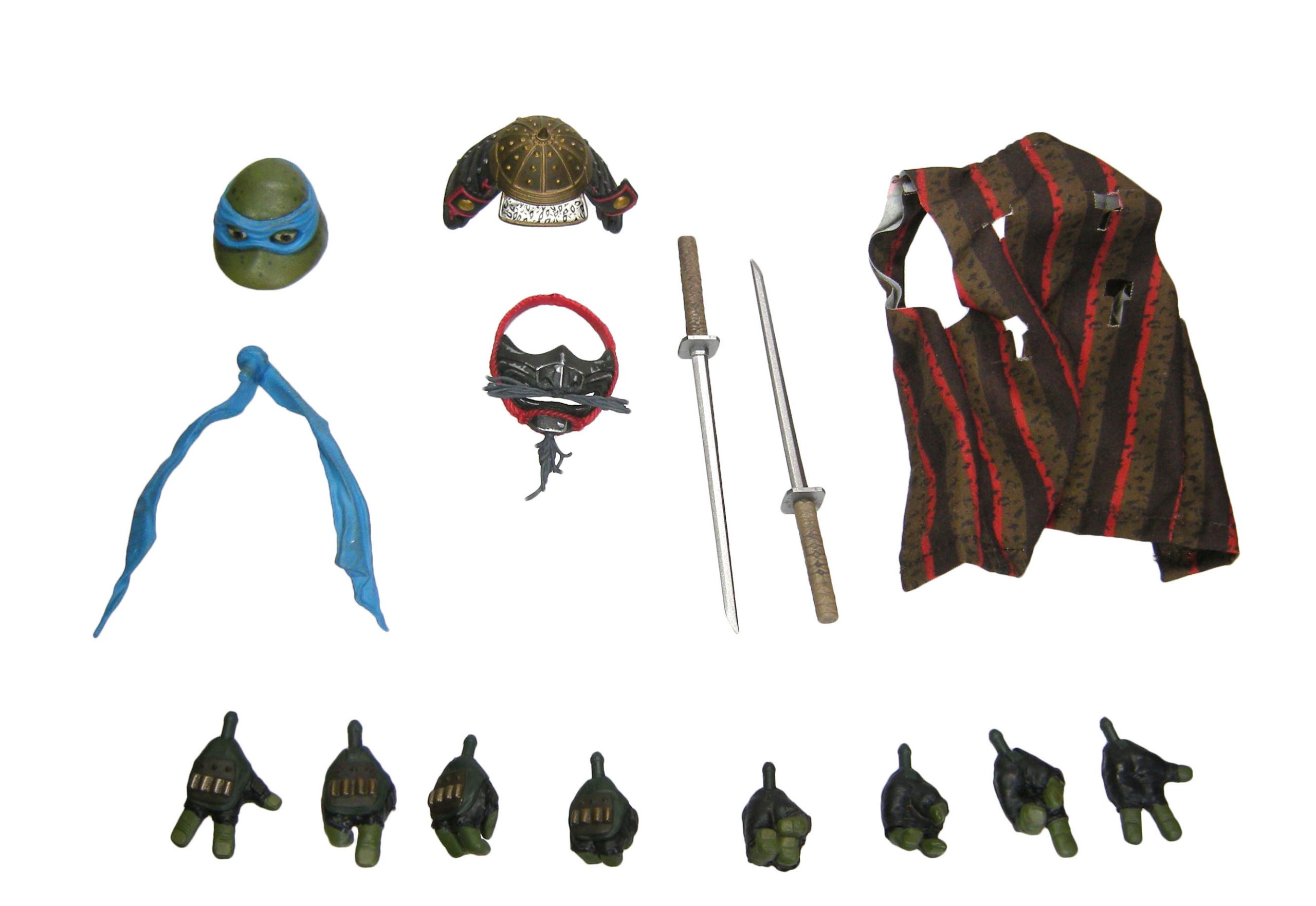 Leonardo est accompagné d’un très grand nombre d’accessoires, dont principalement sa panoplie de samurai, à savoir son casque (kabuto), son masque (menpō) et son manteau. Il possède également ses deux sabres, un bandeau et quatre paires de mains interchangeables, à redistribuer entre Michelangelo et lui.