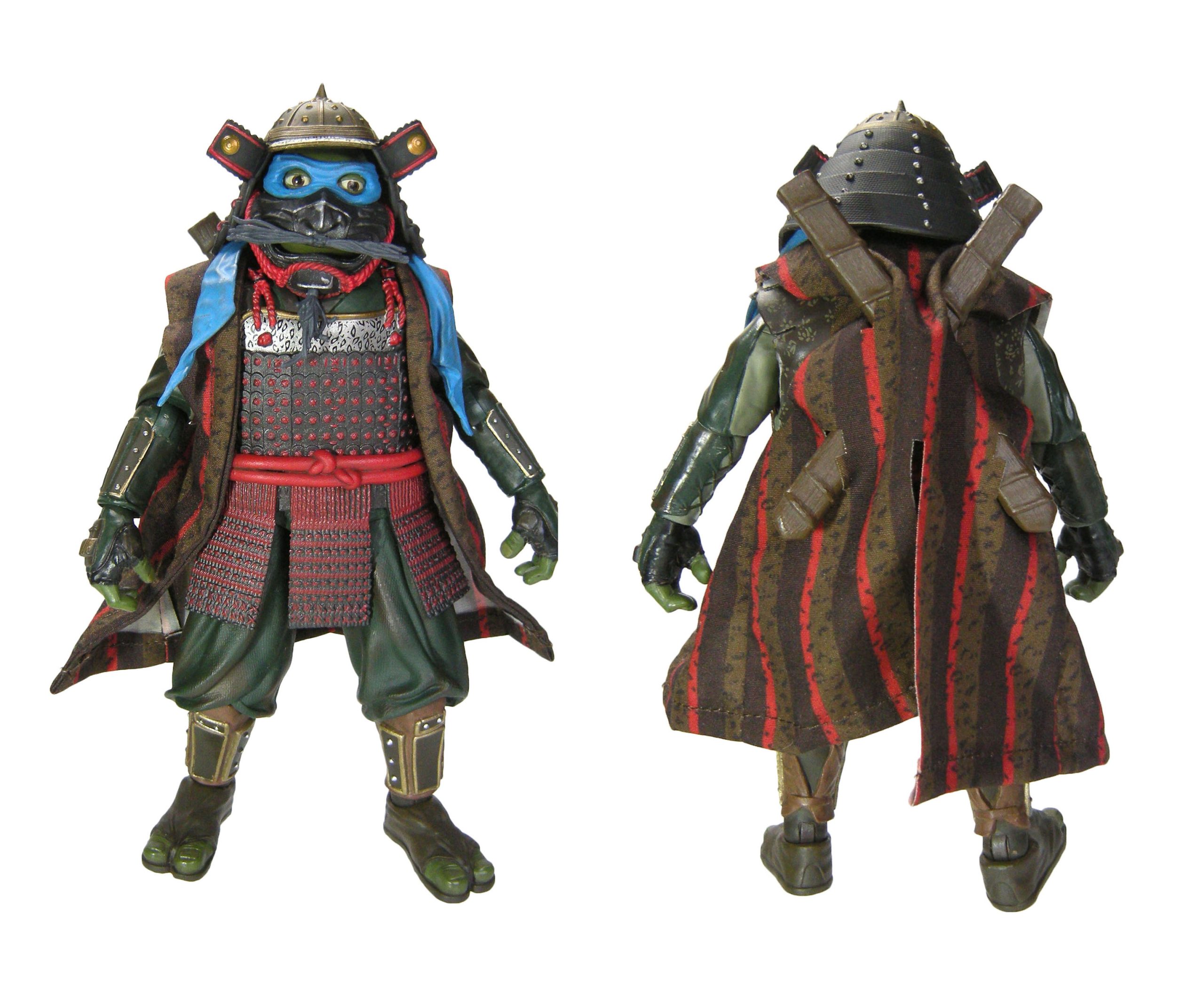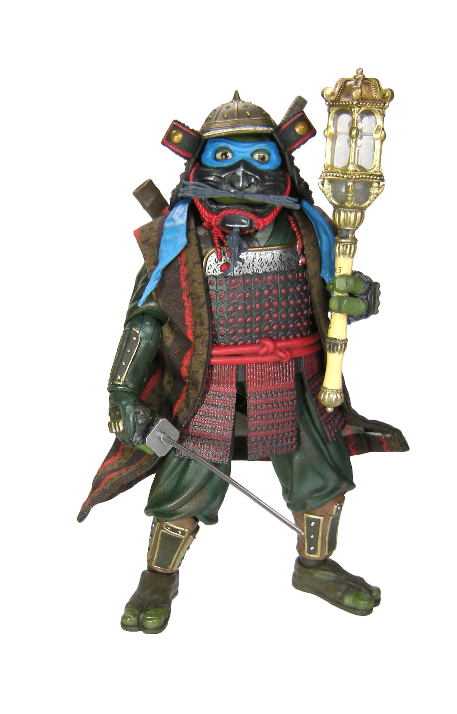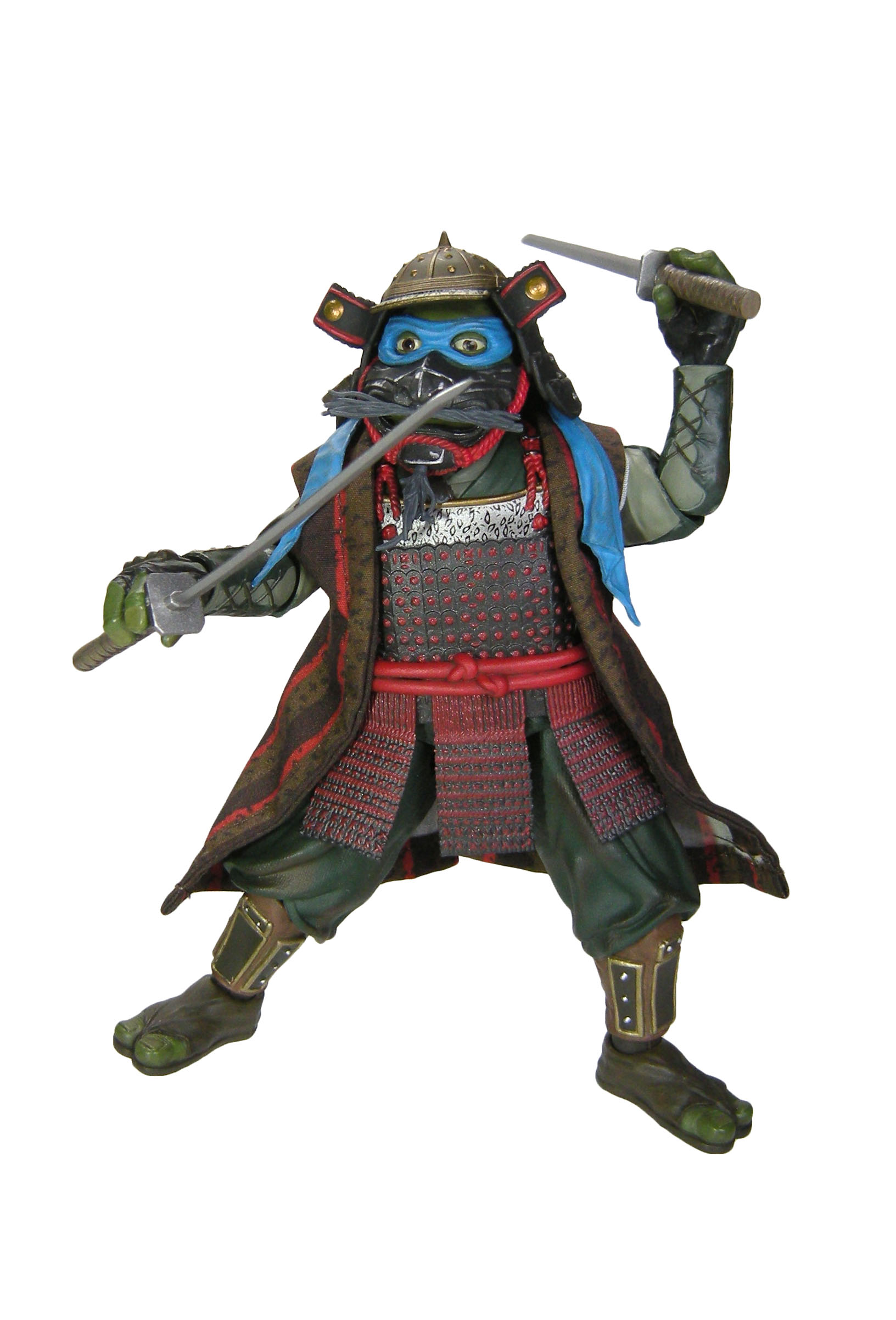 Leonardo est accompagné d’un très grand nombre d’accessoires, dont principalement sa panoplie de samurai, à savoir son casque (kabuto), son masque (menpō) et son manteau. Il possède également ses deux sabres, un bandeau et quatre paires de mains interchangeables, à redistribuer entre Michelangelo et lui.