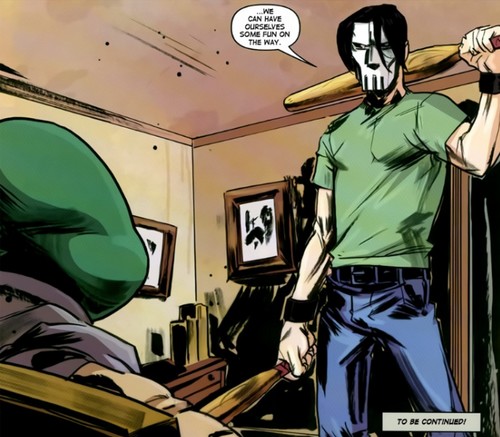 Du côté de Raphael, il faisait connaissance avec Casey Jones. Son père était un ivrogne qui buvait depuis le décès de sa femme. L’alcool lui faisait perdre ses moyens, le rendant violent. Il était très certainement parti dans un bar se rafraîchir le gosier. Il ne se souviendrait plus de rien le lendemain… Casey n’était pas effrayé par Raphael car il ne le jugeait pas à l’apparence. Son père lui faisait plus peur que le teint vert et la tête ronde de la tortue mutante. Il proposait à son sauveur de partir manger un bout quelque part pour le remercier de son intervention. Il partait prendre un masque de hockey, lui proposant de nettoyer les rues sur leur chemin.