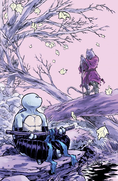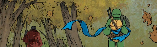 Leonardo s’entrainait au bord du petit lac, repensant à son combat contre Raphael au théâtre (TMNT #28) et la décapitation de Victor (TMNT #27). Splinter le rejoignait timidement. À travers quelques allégories, il lui faisait comprendre que Shredder s’était servi de lui comme de son épée. Yoshi pensait lui aussi être l’épée du Foot Clan, jusqu’à ce que Tang Shen lui ouvre les yeux et lui annonce qu’elle était en ceinte de Leonardo (TMNT Micro-series : Splinter). Son allégeance au Foot Clan était du passé. Sa famille avait dorénavant besoin de lui plus que jamais. Le rongeur lui donnait un bandeau bleu avant de s’en aller. Leonardo restait immobile, regardant son présent.