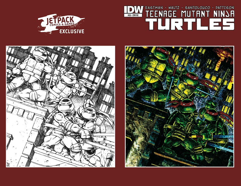 - Cover RE Jetpack #2 « Turtles Creator Jam Edition » – Divers artistes. Pour les fournisseurs Jetpack Comics à l’occasion du Free Comic Book Day 2014. Édition limitée à 750 copies.