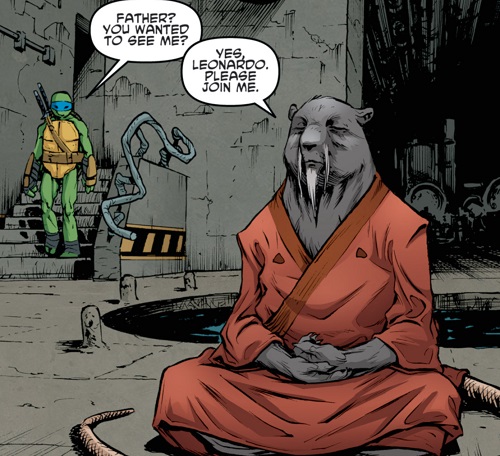 Leonardo était parti voir Splinter dans les souterrains de leur repaire. Son père voulait savoir comment s’était déroulé leur entraînement du soir. Après un compte rendu de la tortue sur leur combat, le rat était soulagé de voir que tout rentrait dans l’ordre pour sa famille. Leonardo était prêt à reprendre effectivement sa place de chef de l’équipe. Son lavage de cerveau n’était plus qu’un mauvais souvenir. Ses aptitudes étaient revenues. Le rongeur l’avait aussi fait venir pour qu’ils évoquent leurs prochaines stratégies contre le Foot Clan. D’ici peu, Shredder saurait qu’ils étaient de retour. Ils devaient agir au plus vite pour profiter de l’effet de surprise.