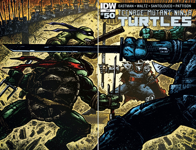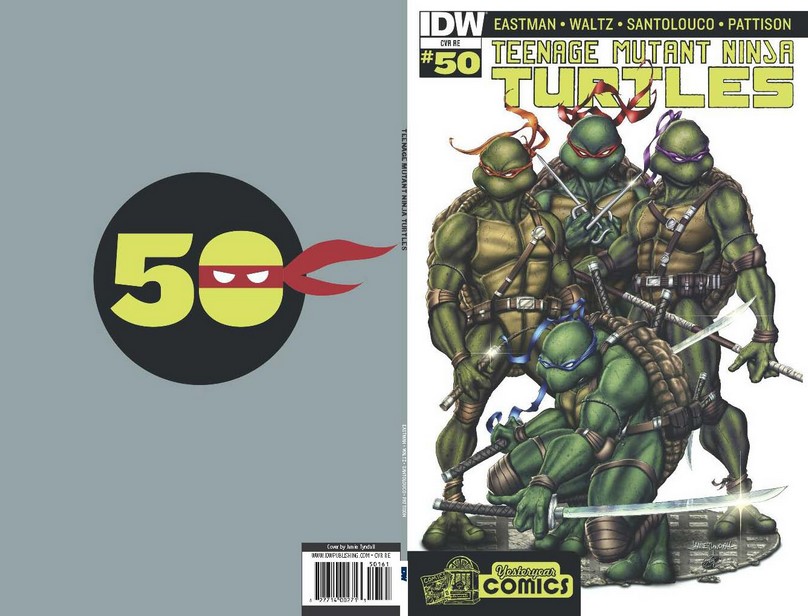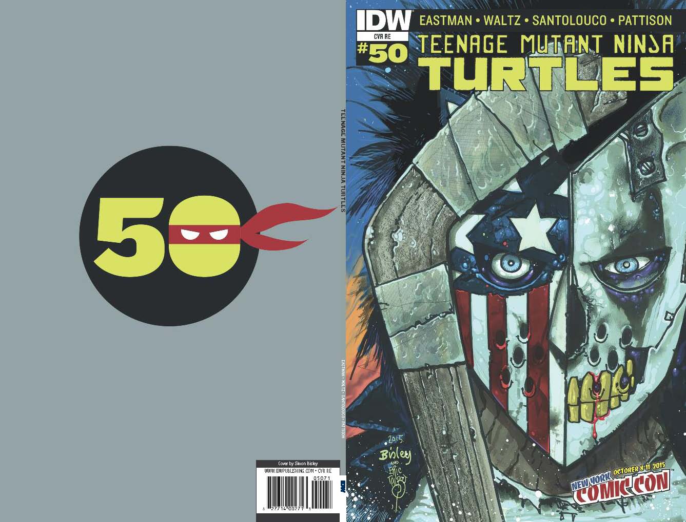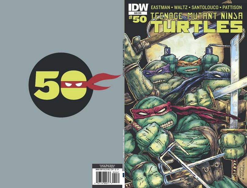 - Ce TMNT #50 marque la fin de la première partie de l’histoire des Tortues Ninja chez IDW Publishing. En interview, Tom Waltz et Bobby Curnow ne pensaient jamais arriver à tant de numéros et pourtant cela est devenu une réalité ! Poussés par l’enthousiasme de la réussite, cinquante numéros supplémentaires ont été annoncés par la suite.