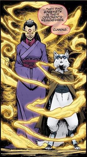 Quelque part au Japon du XVIIe siècle, une armée laissait derrière elle cinq corps sans vie. Quelqu’un les observait depuis l’orée du bois, un robot renfermant un utrom du nom de Sulfurch. Il était accompagné de Krang, qui avait observé la scène. Saki venait d’exécuter quatre enfants et un homme. L’utrom ne comprenait pas pourquoi il avait tenu à les exécuter lui-même et percevait en eux une certaine importance. Krang demandait à son lieutenant de prévenir immédiatement le département des sciences en leur chef, Ma’Riell, pour faire au plus vite des prélèvements d’ADN et d’AQN de ces cinq mystérieux individus. Peut-être pourrait-il s’en servir un jour contre Saki pour se venger de sa trahison (The secret history of the Foot Clan, part. 4) ?