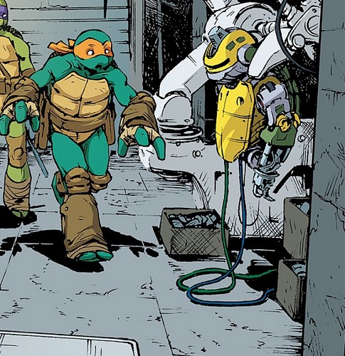 Les tortues venaient d’arriver dans le laboratoire d’Harold Lillja. Tandis que Michelangelo s’émerveillait de voir que Metalhead serait prochainement de nouveau sur pied, Leonardo prenait des nouvelles des recherches du scientifique sur les manteaux des Street Phantoms. Cette technologie avait été améliorée depuis le prototype réalisé par Harold et son ancienne partenaire, qui l’avait emporté avec elle à son départ. Mais tout cela, il préférait en discuter avec la bonne tortue. Il perdait son temps avec les trois autres, pour qui tout cela devait être du charabia. On parlait à un niveau subatomique !!
