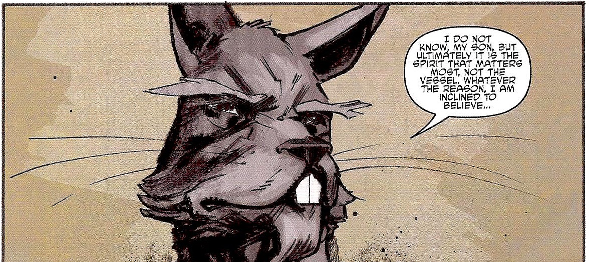 De retour dans leur repaire, les tortues expliquaient ce qu’elles venaient de voir à Splinter. D’après les recherches de Donatello, l’art martial pratiqué par le français était de la savate. Splinter soupçonnait les deux autres ninjas d’être du Foot Clan. Le maître se montrait rassuré que ses fils ne soient pas entrés en scène. Ses doutes semblaient se confirmer. Ils ne s’étaient pas réincarnés au XXIe siècle par hasard, mais bien pour régler une affaire vieille de 500 ans. Donatello, esprit fondamentalement logique et cartésien, était extrêmement sceptique à cette hypothèse. Il pouvait concevoir le mutagène et les ninjas à la solde de multinationales. Mais la question de la réincarnation et de leur destin étaient très improbables pour lui. Splinter restait convaincu qu’ils n’étaient pas revenus à la vie par hasard et était très reconnaissant pour les expériences qu’il avait subies à StockGen, le rendant plus intelligent. Il savait, en voyant pour la première fois les quatre tortues, que ses prières avaient été exhaussées (TMNT #5). Voyant que Stockman préparait quelque chose de terrible, une arme de guerre, il mit tout en œuvre pour avertir April O’Neil, jusqu’à l’arrivée des deux ninjas Foot le soir de leur mutation.