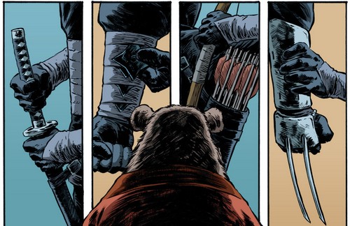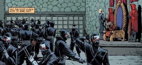 Si la tortue était venue quérir des informations, ces nouvelles cachoteries ne faisaient qu’accentuer sa déception et ses doutes. Le rat stratège lui rappelait qu’il avait été laissé sur le banc de touche également, lorsque les tortues avaient planifiées l’attaque du Technodrome et de Krang (TMNT (Vol. 5) #42). Il lui concédait que ses fils avaient bien fait de le garder à l’écart de leur bataille passée, n’étant pas encore prêt sur le plan émotif. Mais il ne considérait pas ses élèves comme prêts, à l’inverse de lui, pour ce qui se préparait. En tant que chef du Foot Clan et de sa famille, il se devait de prendre des responsabilités et d’endosser un rôle qui n’était plus celui que les tortues avaient connues. Raison pour laquelle il les tenait à l’écart de la bataille naissante. Cela incluait des choix qui demeuraient discutables. Leonardo n’avait d’autres choix que d’accepter sa position. Les tortues s’apprêtaient donc elles aussi à entrer en guerre.