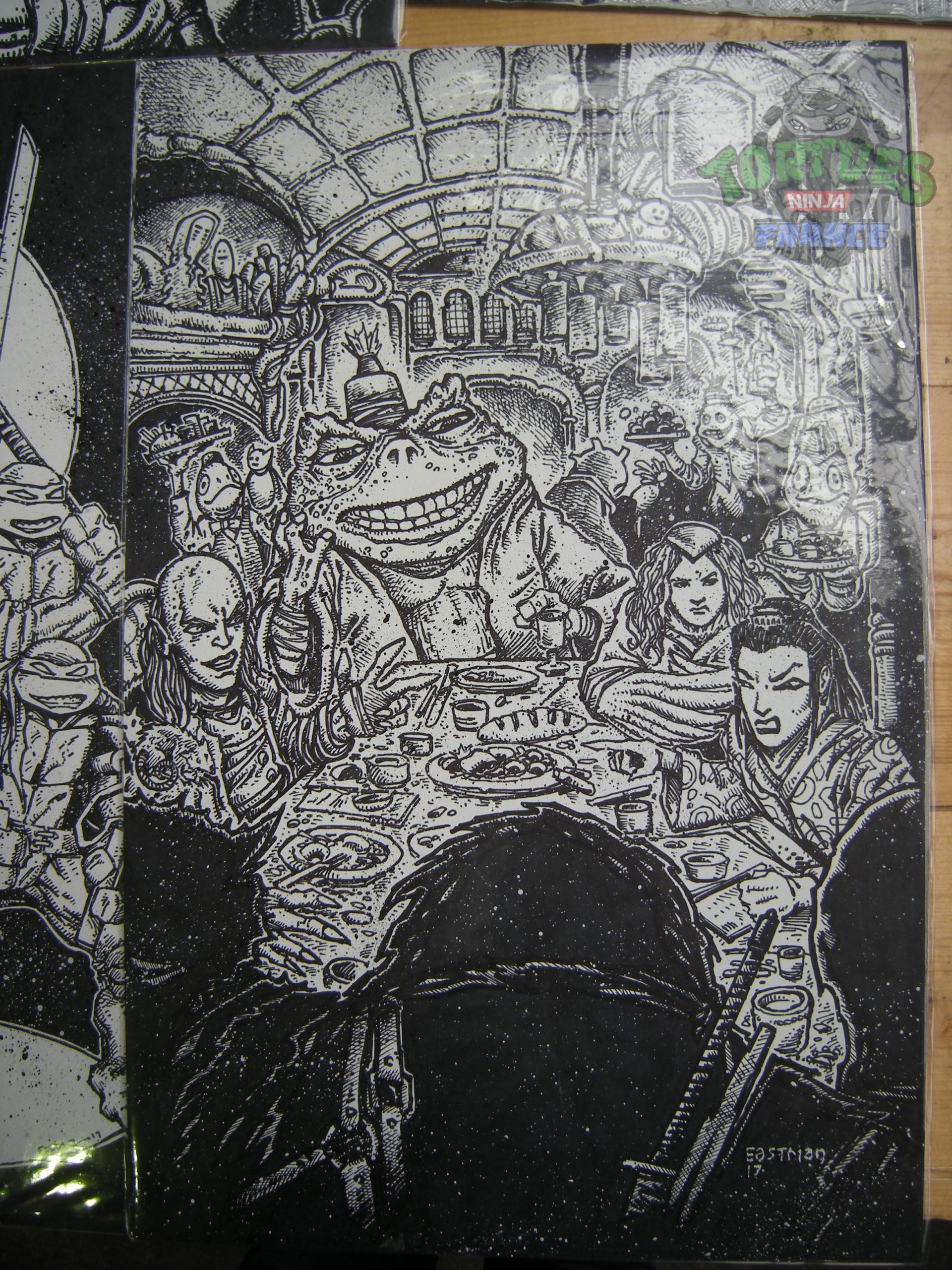 - Les couvertures dessinées par Kevin Eastman pour ce numéro ont été révélées par le Tortuepédia le 26 février 2017, à la suite de leur exposition au cours du Brussels Comic Con. À cette occasion, nous avons pu également découvrir que Manmoth et Jagwar seraient introduits dans l’univers d’IDW Publishing et obtenir une super interview avec Kevin Eastman.