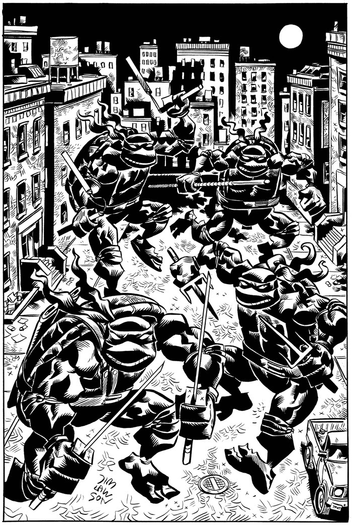 • Cover RE TMNT : A Collection Jim Lawson. Pour fêter l’ongoing le plus long à travers la sortie du numéro #73 du comic, le collectionneur de comics Rich du site tmnt-ninjaturtles.com a lancé une campagne Kickstarter pour financer une couverture spécialement commandée au géant Jim Lawson.